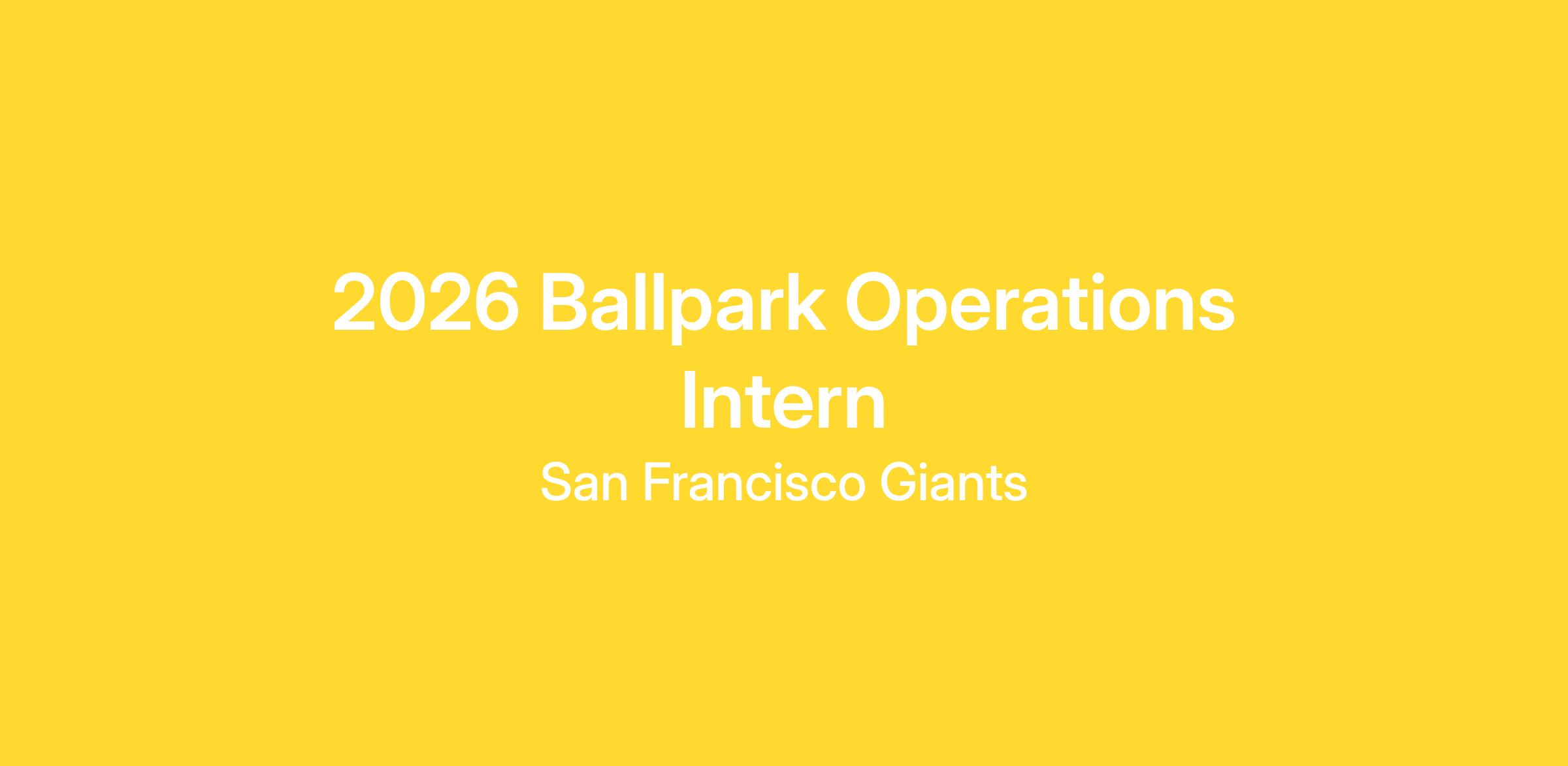 The San Francisco Giants are looking for a Ballpark Operations Intern for the 2026 baseball season, to provide a unique opportunity for individuals looking to understand the inner workings of a ballpark pre, during, and post baseball games and events. You’ll experience the collaboration that takes place between the Ballpark Operations department managers, a variety of internal Giants departments, and the event staff groups on different projects and initiatives that directly correlate with the successful execution of the ballpark’s diverse portfolio of venue events. You will be expected to assist with daily operations and a variety of tasks and responsibilities in conjunction with game/event-day preparations. The ideal candidate will have the ability to be collaborative, creative, and proactive, as well as a strong ability to handle sensitive information with discretion and diplomacy. This role reports to the Senior Systems & Facilities Manager, Ballpark Operations, and this position will be located in our beautiful ballpark headquarters at 24 Willie Mays Plaza in San Francisco.