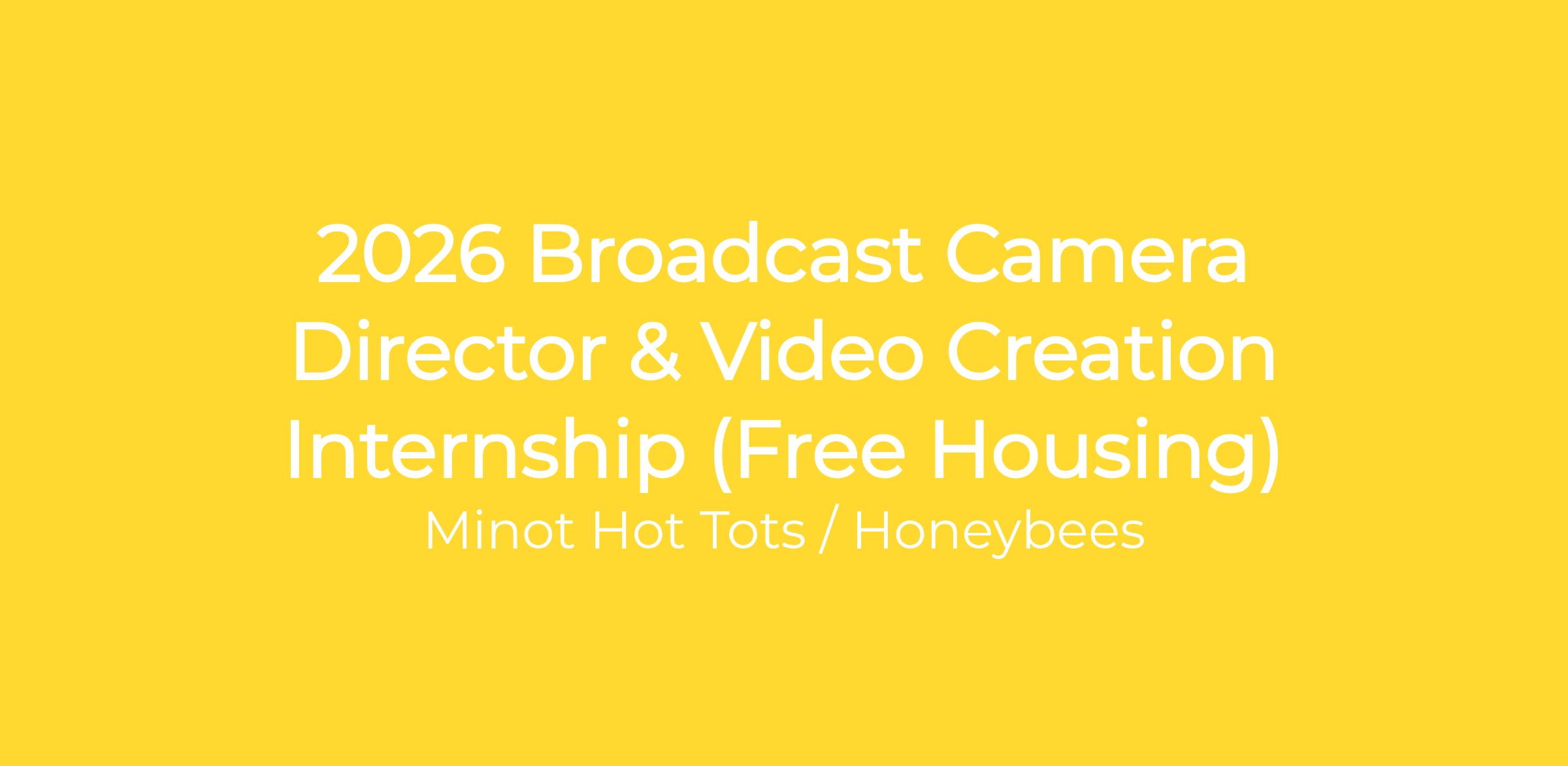 Honeybees are looking for a Broadcast Camera Director & Video Creation intern to join their team in Minot, North Dakota for the 2026 season. As a Broadcast Camera Director intern you will be directly involved in the live broadcast of all Minot Hot Tots / Honeybees games.