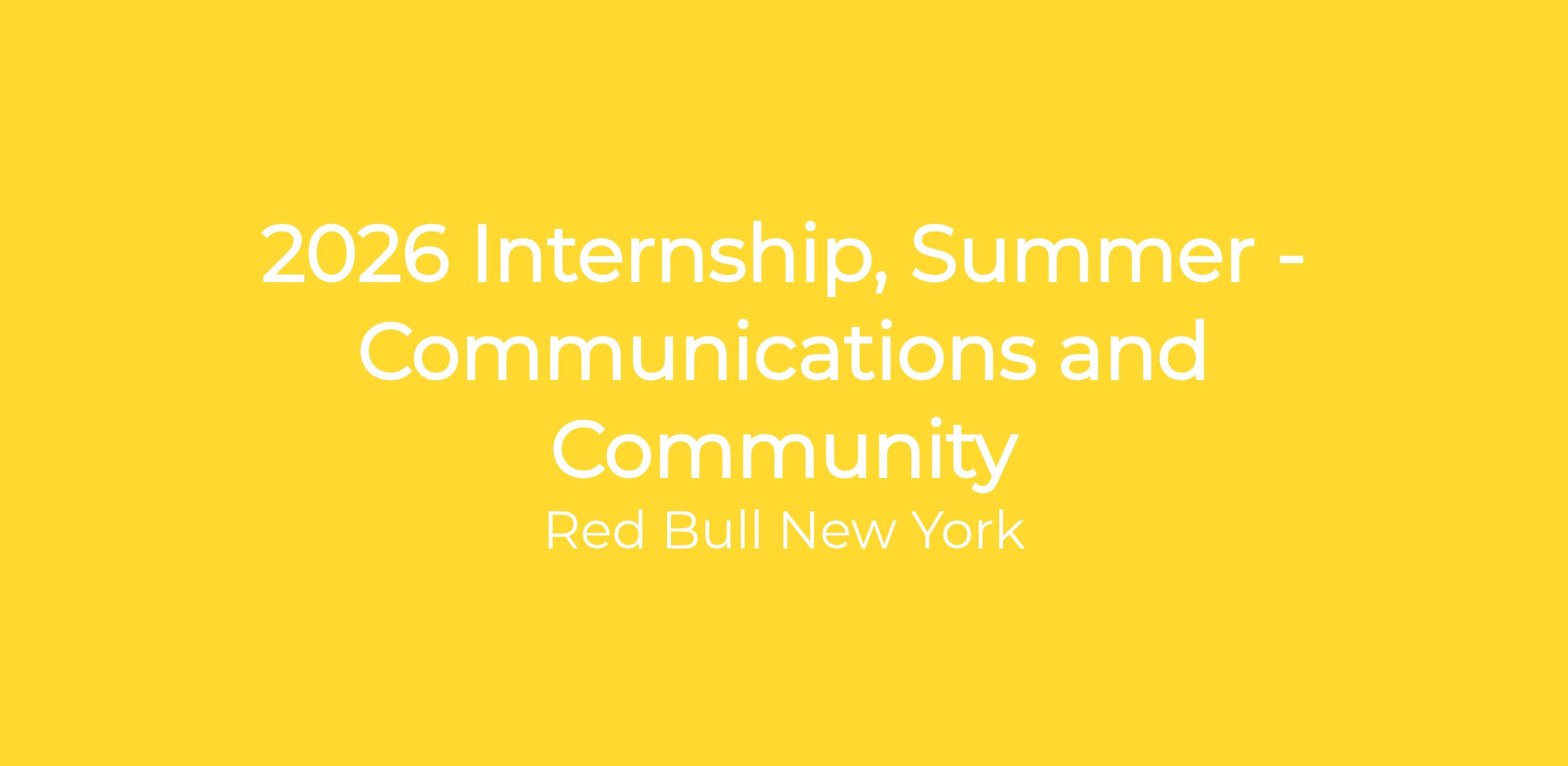 2026 Internship, Summer - Communications and Community