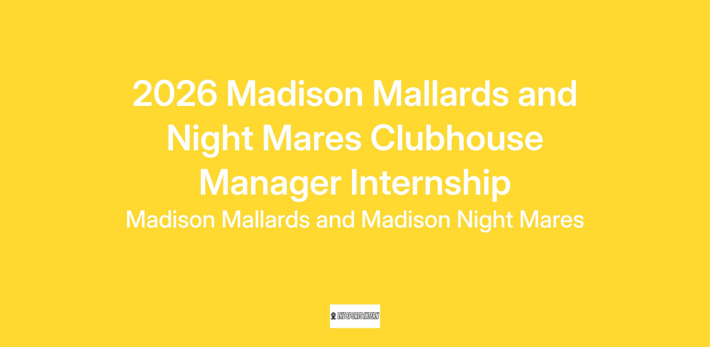 Madison Night Mares are looking for a Clubhouse Manager to join our team for the 2026 season. As the Clubhouse Manager, you will help support our Stadium Operations and Player personnel team. Weโre looking for passionate, talented, and positive people who strive for excellence, happiness and inspire the same in others. The clubhouse provides the focal point of a ball club. It determines the way a player develops and the level of success they have both on and off the field. A well-managed clubhouse offers a multifunctional facility, from providing a meeting room to serving as a second home to the players. As the Clubhouse Manager, you will provide exceptional customer service to players, coaches, team personnel, umpires, league officials, and special entertainment acts such as mascots. The Clubhouse Manager will work closely with the operations department and other internal departments to assist with all operational and team needs. This includes but is not limited to equipment inventory management, clubhouse and dugout cleanliness and organization, and serving as a Mallards representative at various promotions and events.
