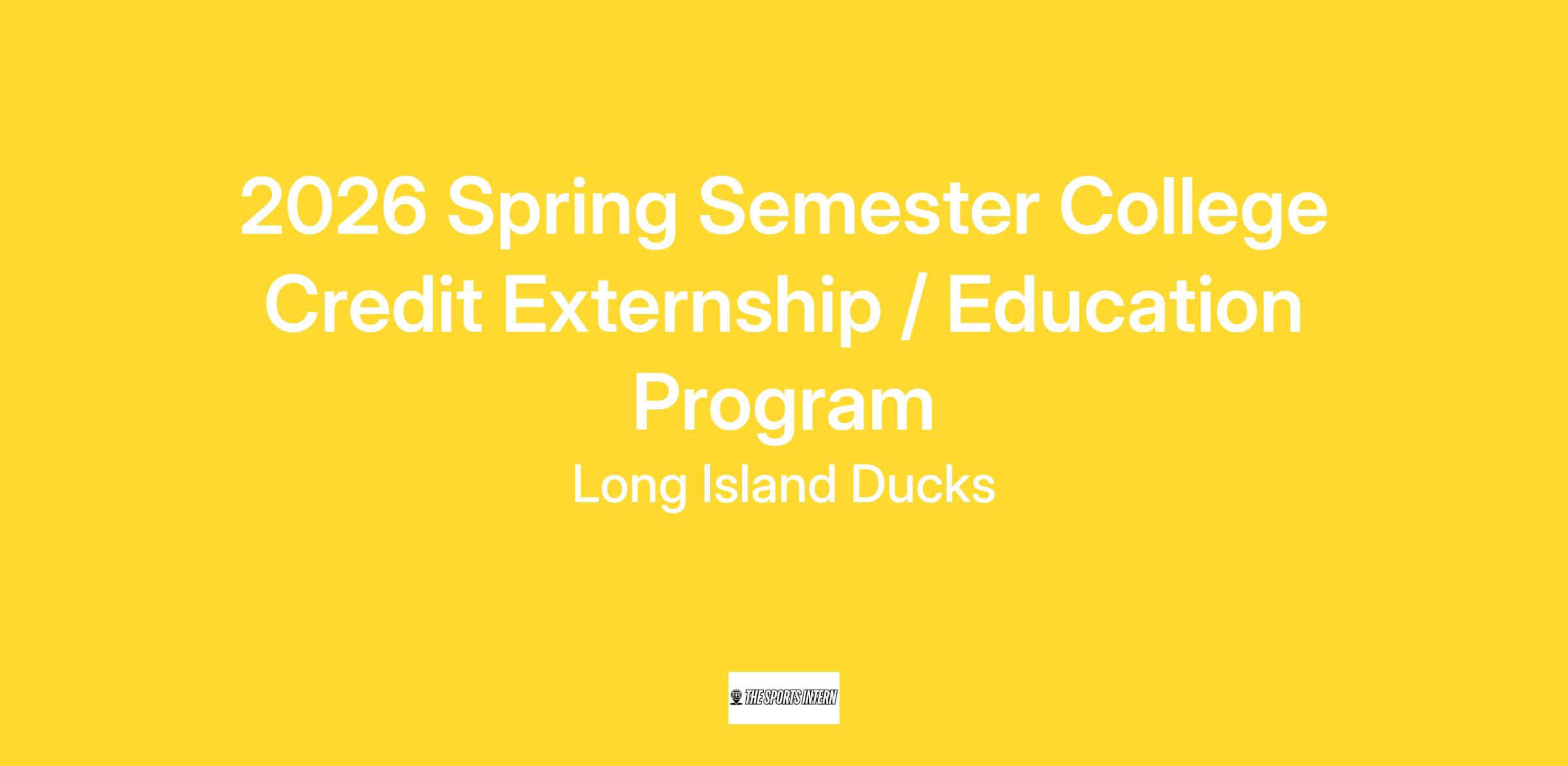 The Four-Time Atlantic League champion Long Island Ducks (Central Islip, NY), a member of the Atlantic League of Professional Baseball, are pleased to offer qualified college students a For-Credit externship opportunity during the 2026 Spring Semester. This externship opportunity is for students who will receive credit towards their academic requirements as part of participating in this educational program. The for credit student externship is unpaid and students are not entitled to employment with the Club at the conclusion.