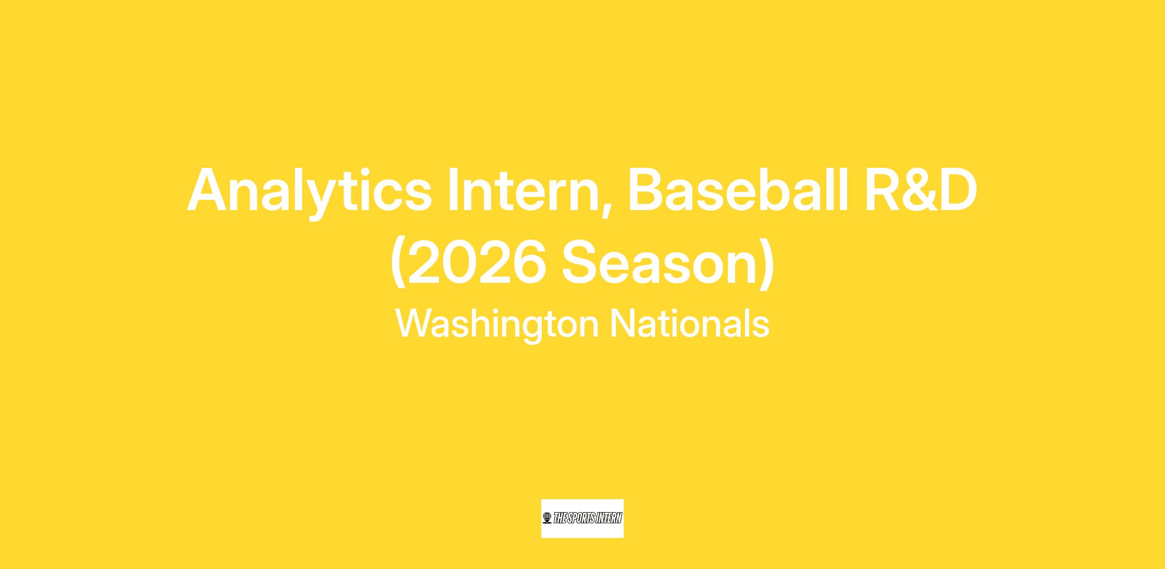 The Washington Nationals are seeking analytics interns to join our Baseball Research & Development team for the 2026 season. As an analytics intern, you’ll work on developing and applying your data science skills to baseball, performing research on baseball questions under the close mentorship of a team member of Baseball R&D. You’ll likely work on one project at a time, with plenty of time for model exploration and personal development. You’ll have the opportunity to work in a collaborative baseball front office daily at the stadium, watching baseball and engaging regularly with more senior members of our baseball operations group.