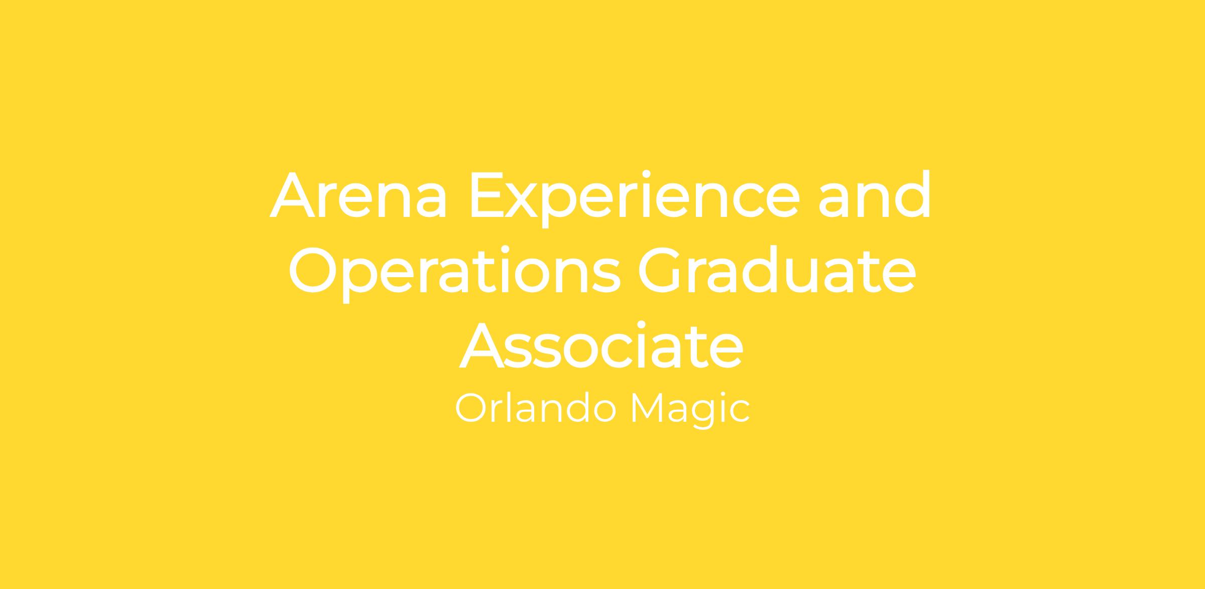 The Arena Experience & Operations Graduate Associate will focus on assisting in all Magic game day logistics and operational duties that pertain to the Kia Center.