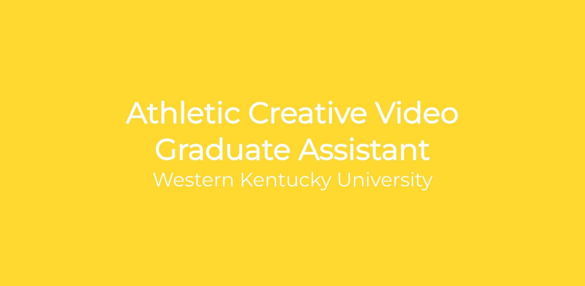 Western Kentucky University, Department of Athletics, is seeking applications for Athletic Creative Video Graduate Assistant beginning July 1, 2026. This is a 12-month, part-time position that reports to the Director of Creative Video. Applicants must have a commitment to and responsibility for adhering to all rules and regulations of WKU, Conference USA, and the NCAA.