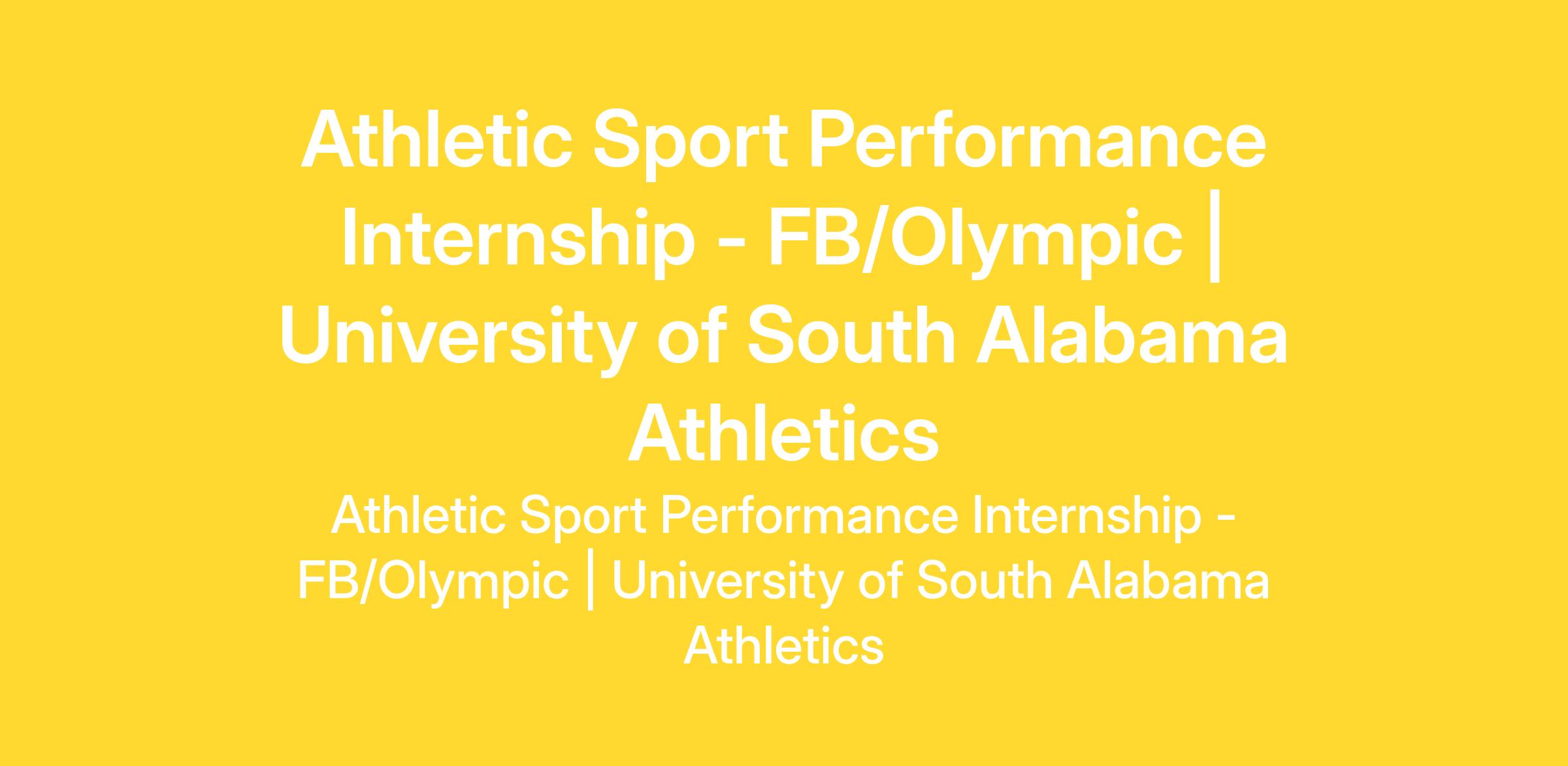 Mobile, Alabama, The University of South Alabama is seeking qualified applicants for the position of Athletic Sport Performance Internship FB/Olympic. This is a stipend, twelve-month position. Intercollegiate coaching experience preferred.