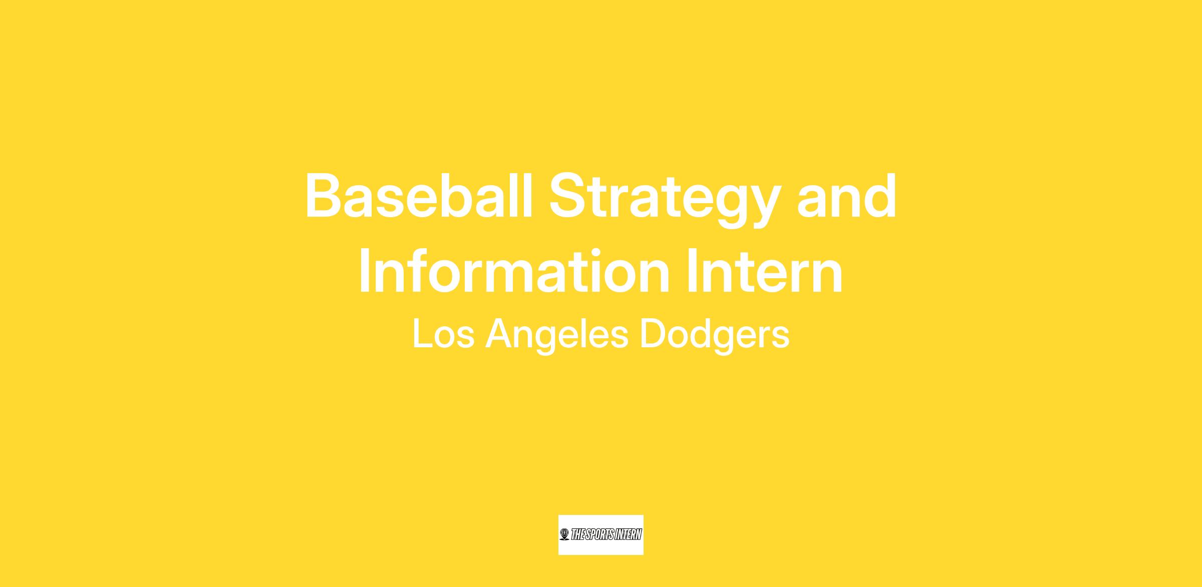 The Los Angeles Dodgers currently have a job opportunity for Baseball Strategy and Information Intern. Following you will find a brief description of the job and application process. For additional information, please contact the Emerging Talent Program at EmergingTalentProgram@ladodgers.com.