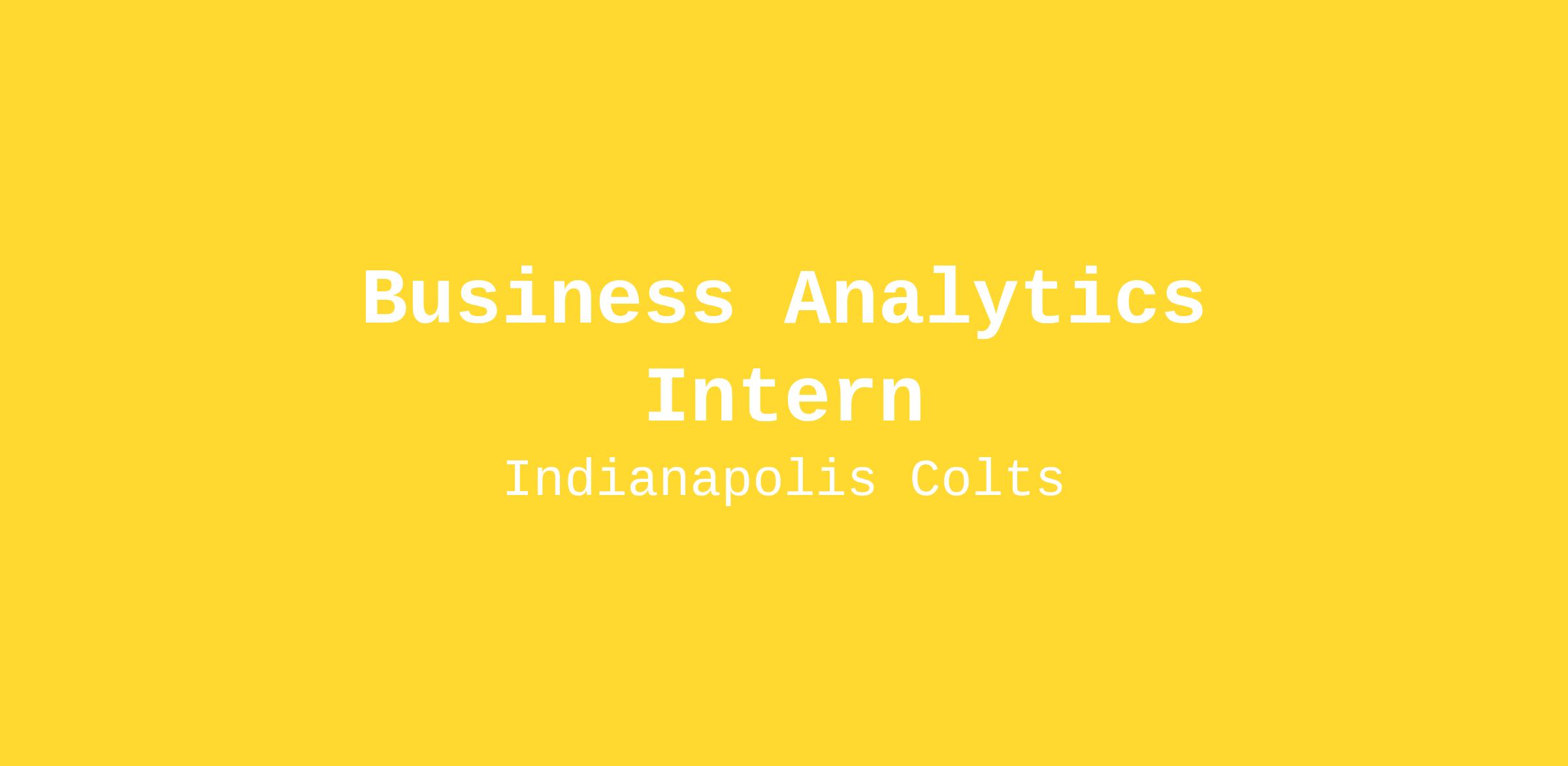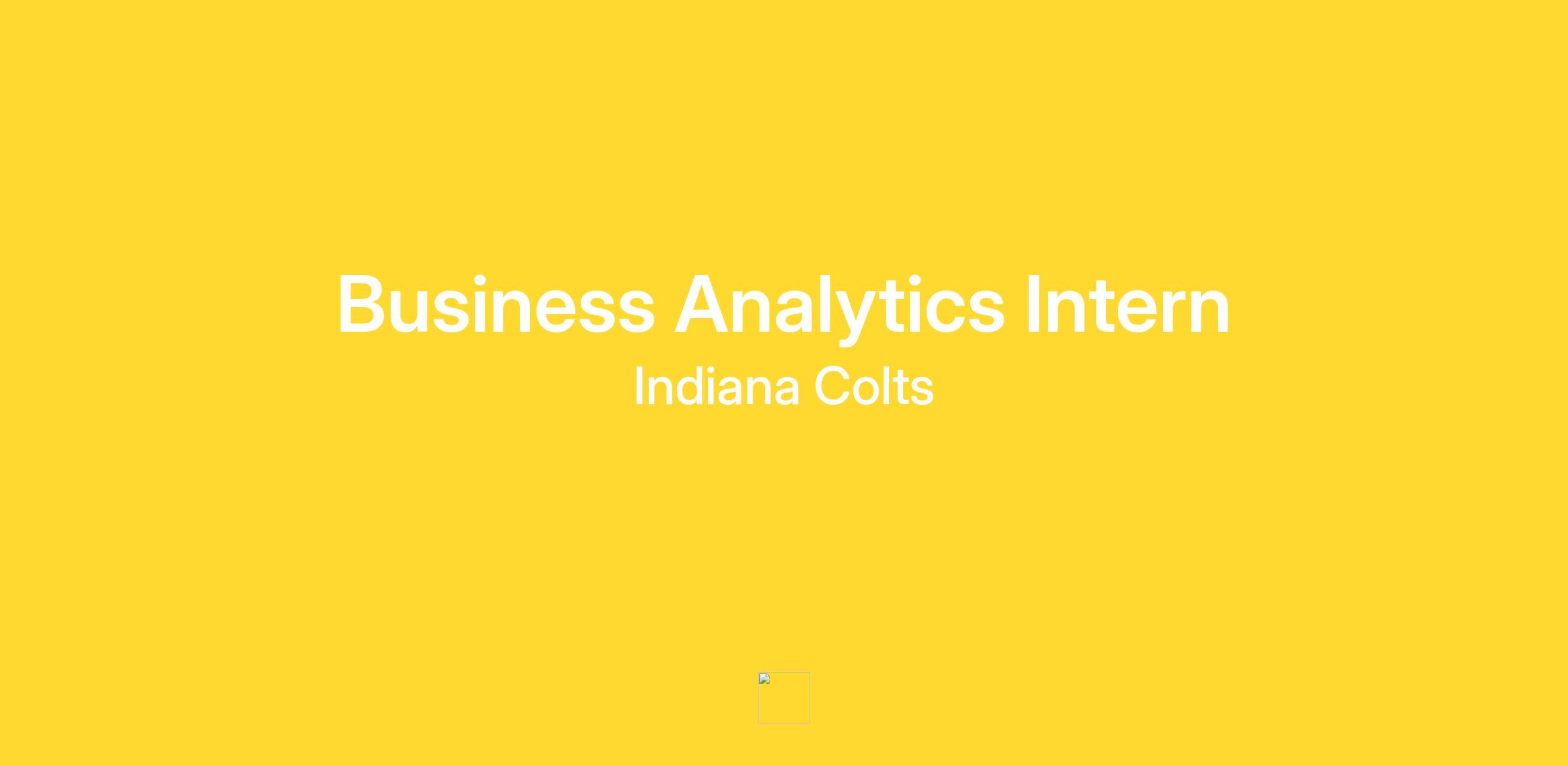 The Indianapolis Colts Business Analytics Intern’s responsibilities may include but are not limited to: