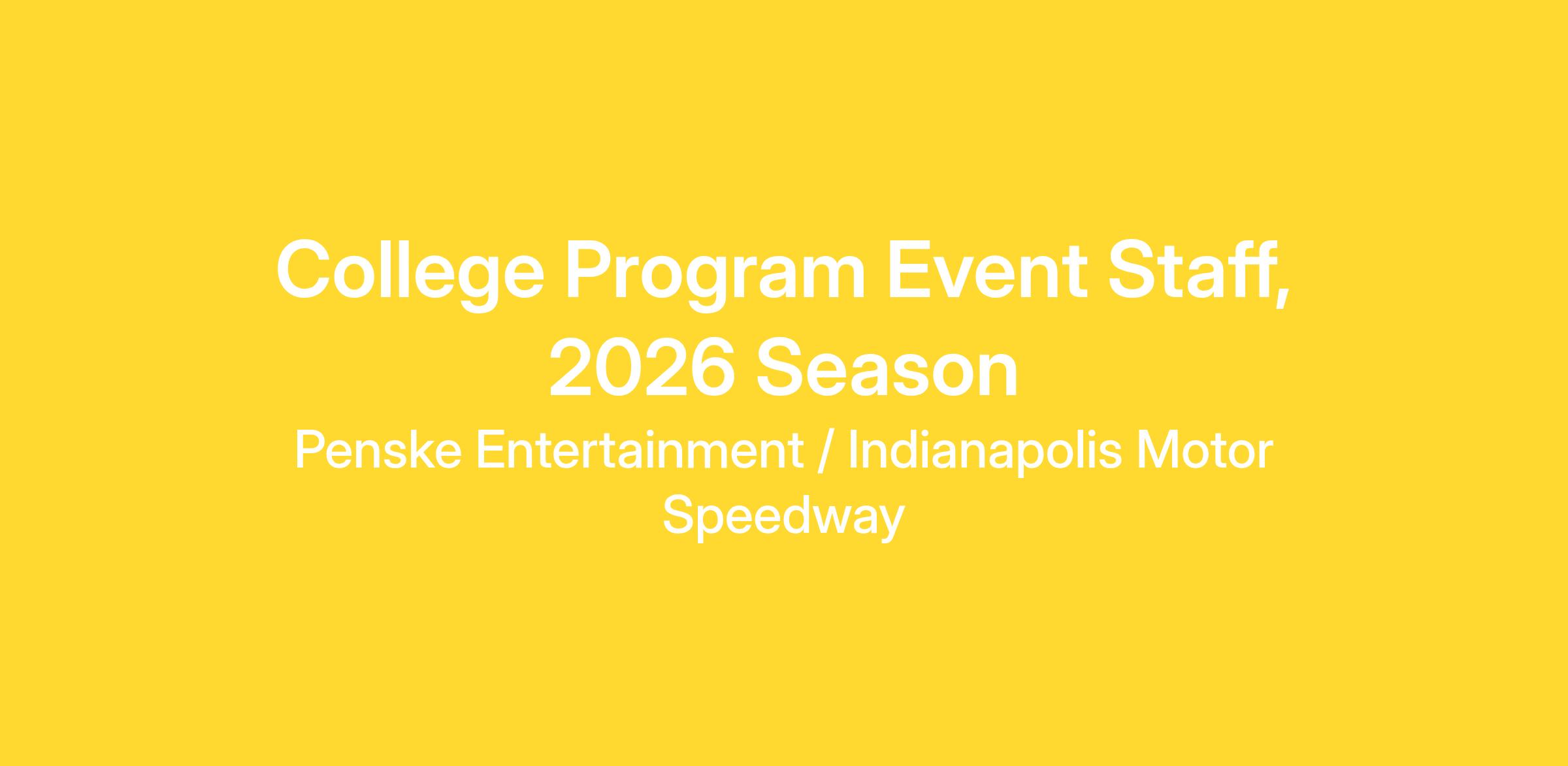 College Program Event Staff roles serve as an entry point to career opportunities with Penske Entertainment. These positions provide students of any major with hands-on exposure to the inner workings of large-scale, live events. As part of the event execution team, students work collaboratively and act as on-site representatives of their assigned department. Event Staff support a range of operational and premium guest services roles, all focused on delivering exceptional experiences for thousands of venue guests. Work is primarily available during the peak event season from May through July, with additional opportunities throughout the summer and fall. Candidates may range from rising freshmen to recent graduates.