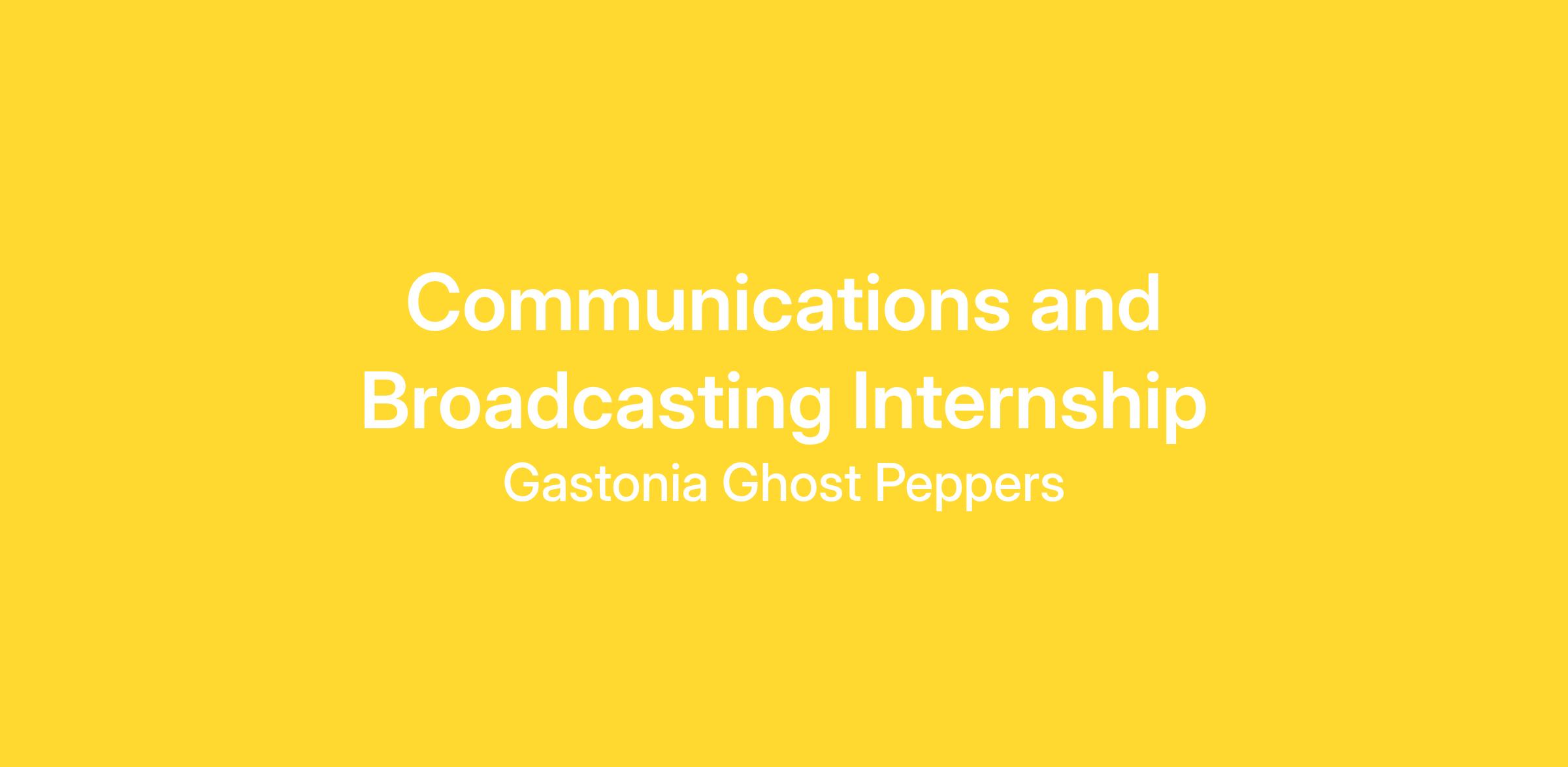 Position Overview: The Communications and Broadcasting Intern will assist in delivering high-quality game broadcasts and managing media communications for the Gastonia Ghost Peppers. This role is ideal for students pursuing careers in sports media, journalism, or communications. Would ideally need to be available from April 1st - October 1st, 2026 pending playoffs.