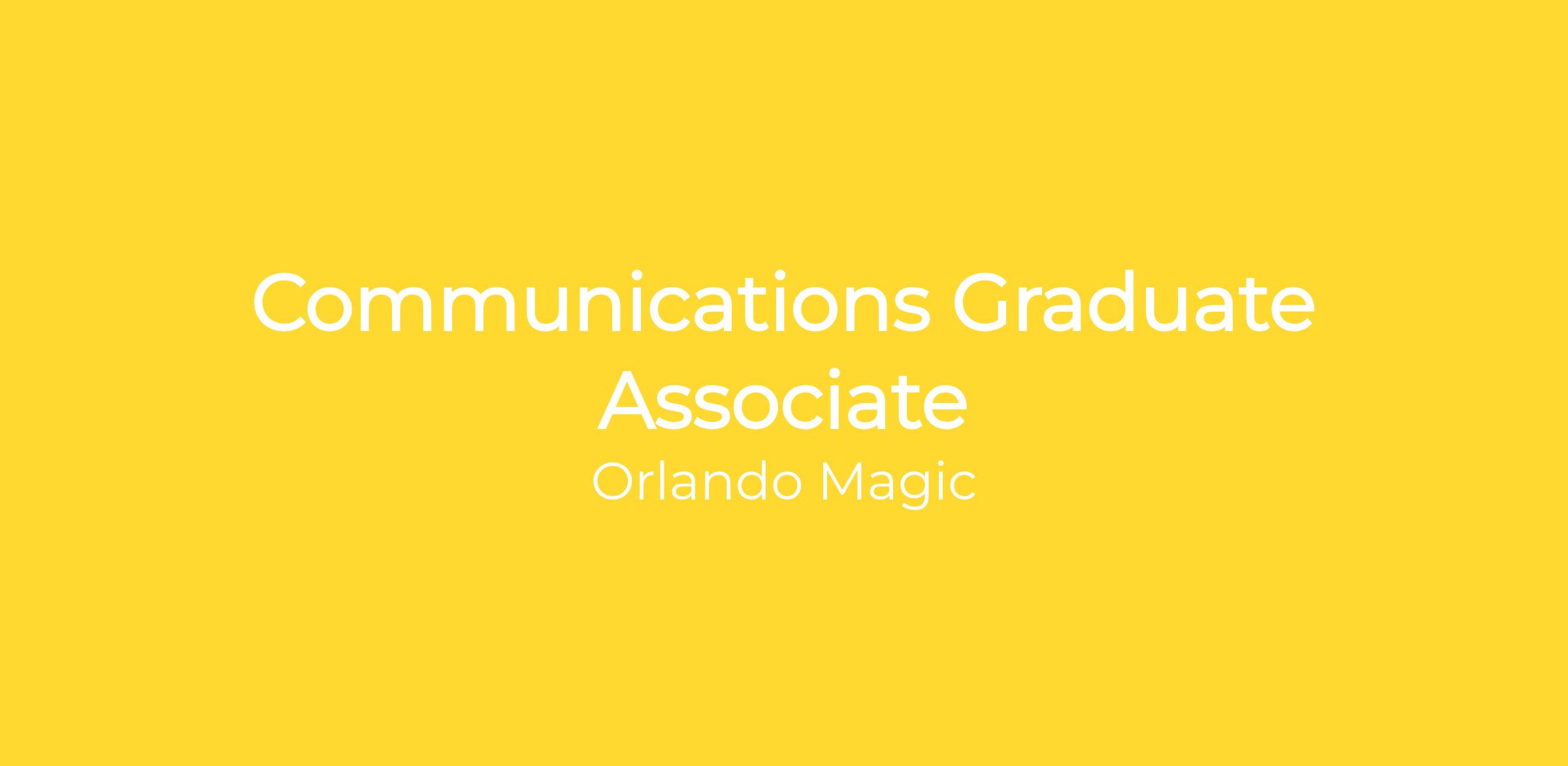 The communications graduate associate (GA) will focus on assisting communications department with duties that pertain to all media relations functions for the Orlando Magic.