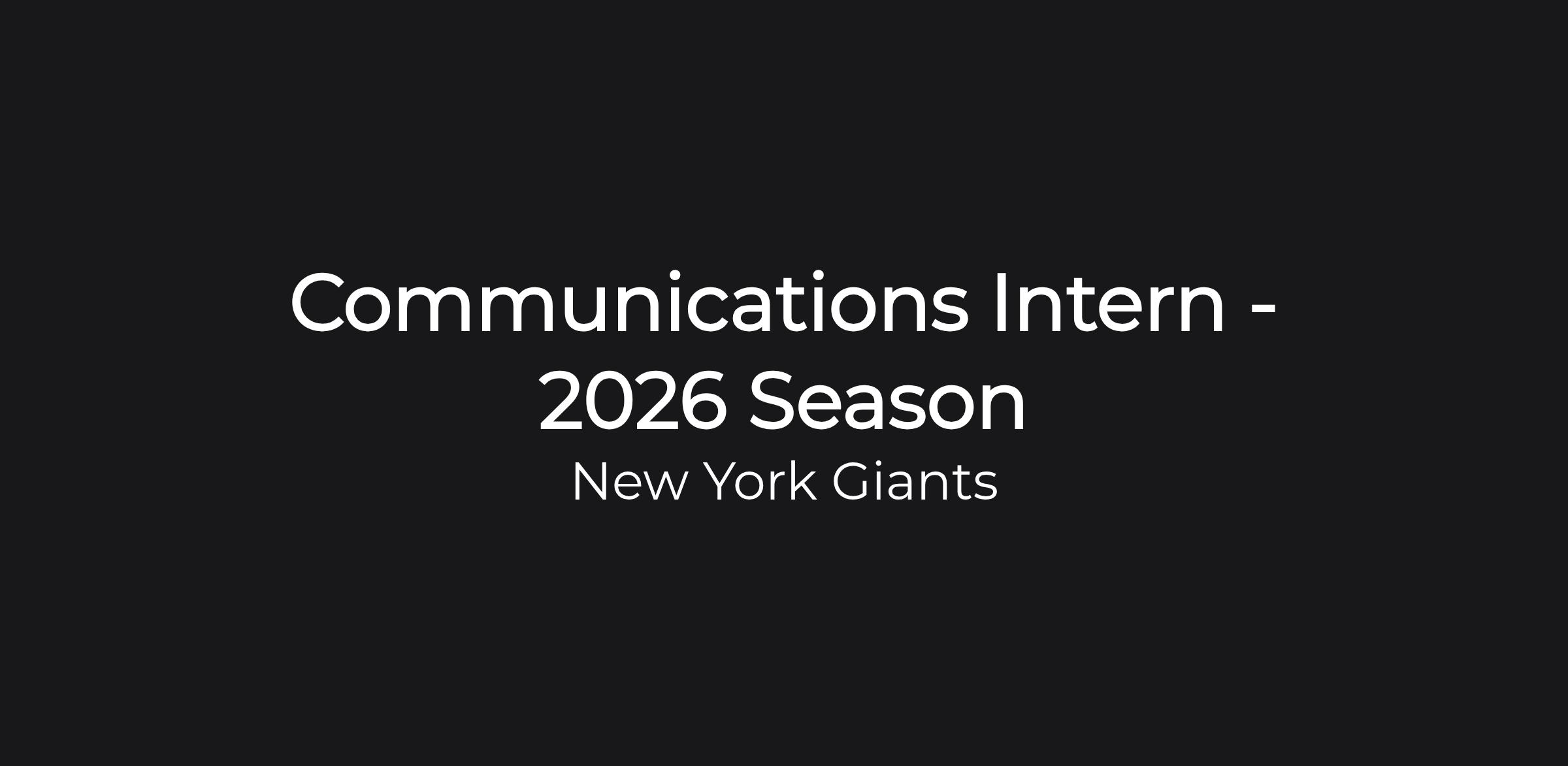Job Overview: The Communications Intern will play a vital role in supporting the New York Giants' Communications Department. The internship offers a unique opportunity to gain hands-on experience in the sports communications field, by assisting in helping to streamline daily communications between the media, players, coaches, and the front office.