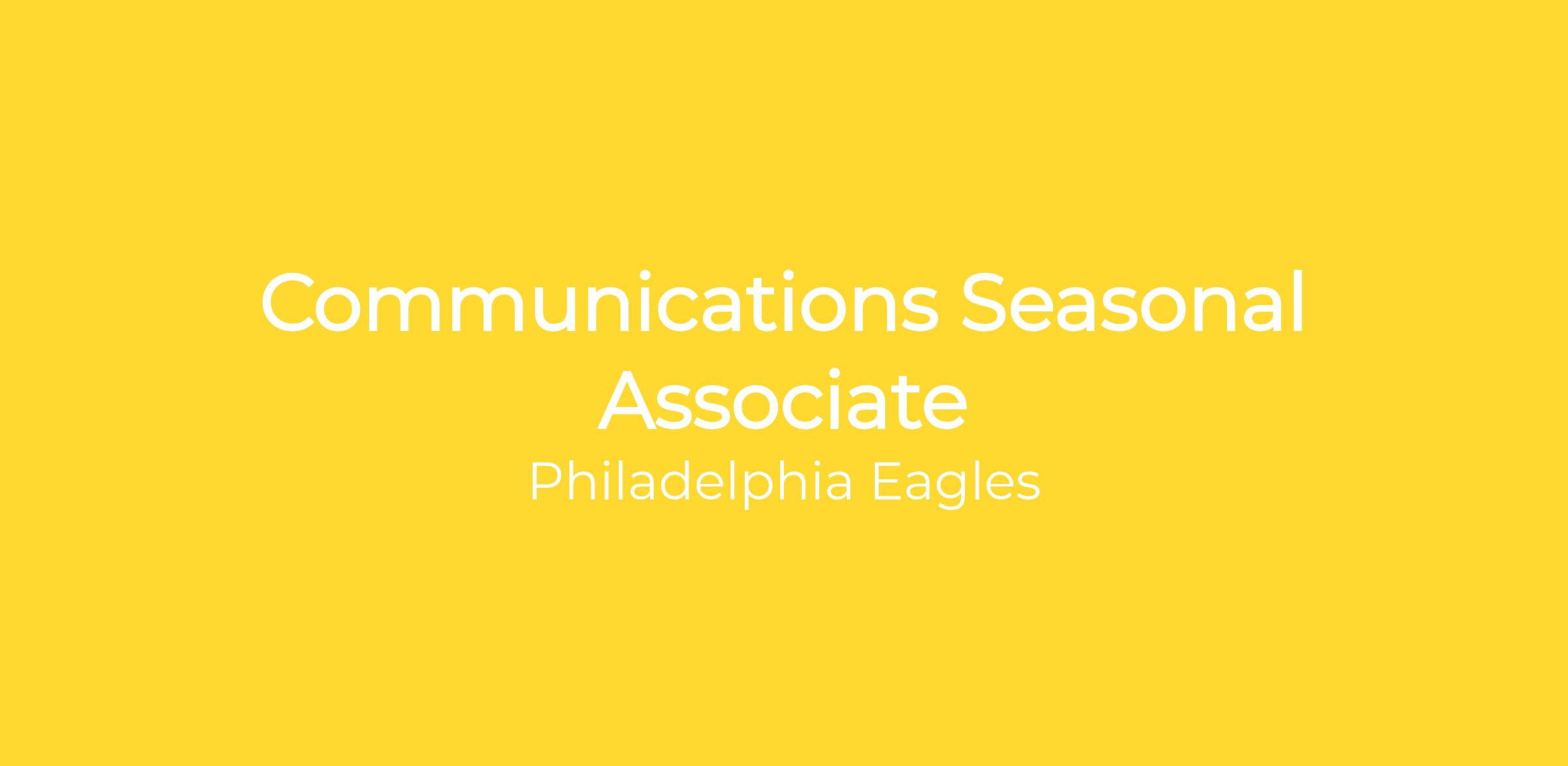 The Philadelphia Eagles’ Communications Seasonal Associate will primarily support the organization’s day-to-day corporate communications efforts, while also providing secondary assistance to the football communications staff. Seasonal Associates will gain experience in all aspects of the Communications department, including opportunities to earn new responsibilities, as determined by the staff. These are paid post-graduate positions and are full-time for the duration of the NFL season (start date to be decided).