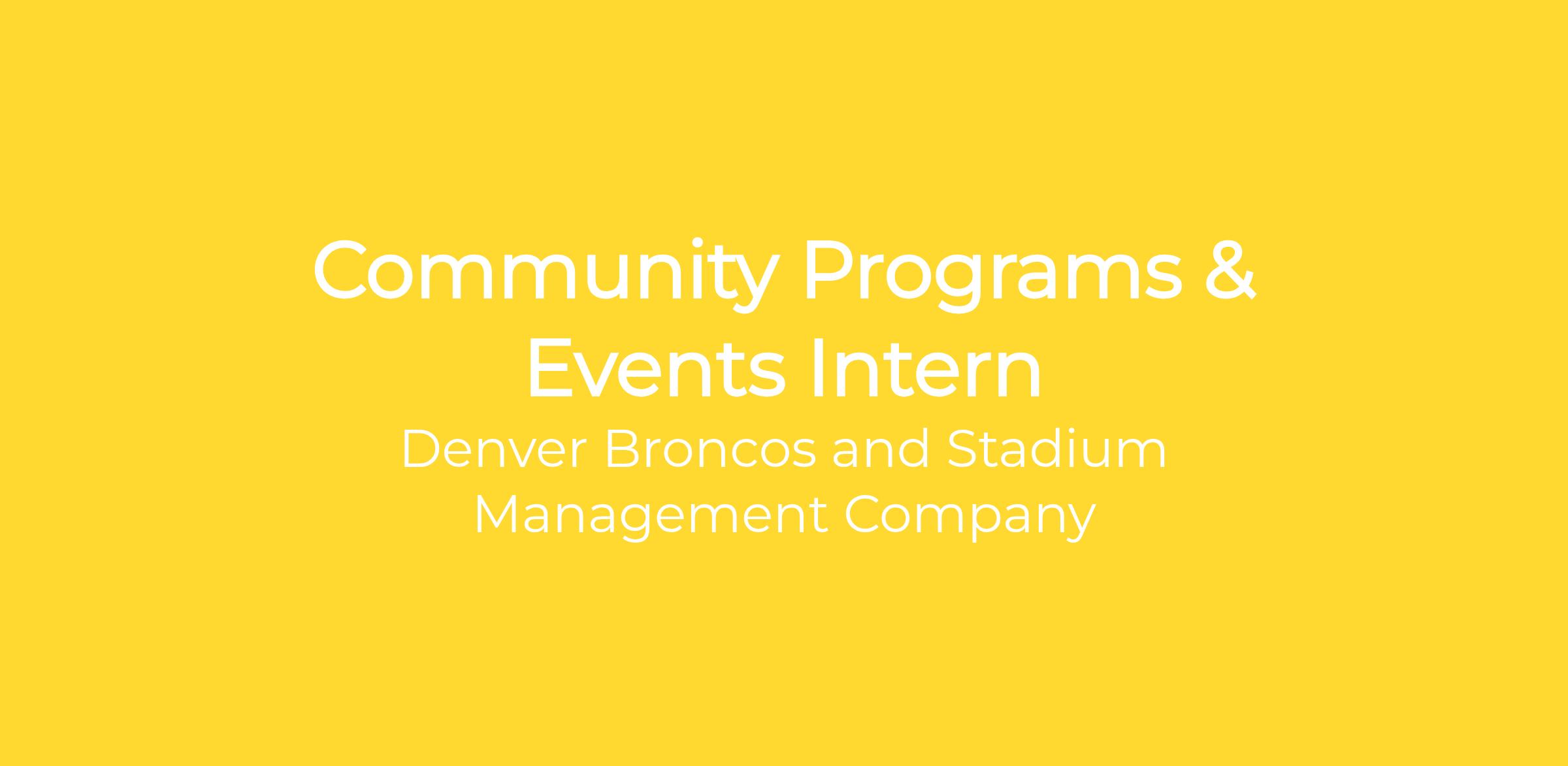 Job Summary: The Denver Broncos Community Programs & Events Intern will support the Denver Broncos Foundation and Community Impact Department with on-and-offsite events, gameday activations and fundraising initiatives while providing administrative support to the department.