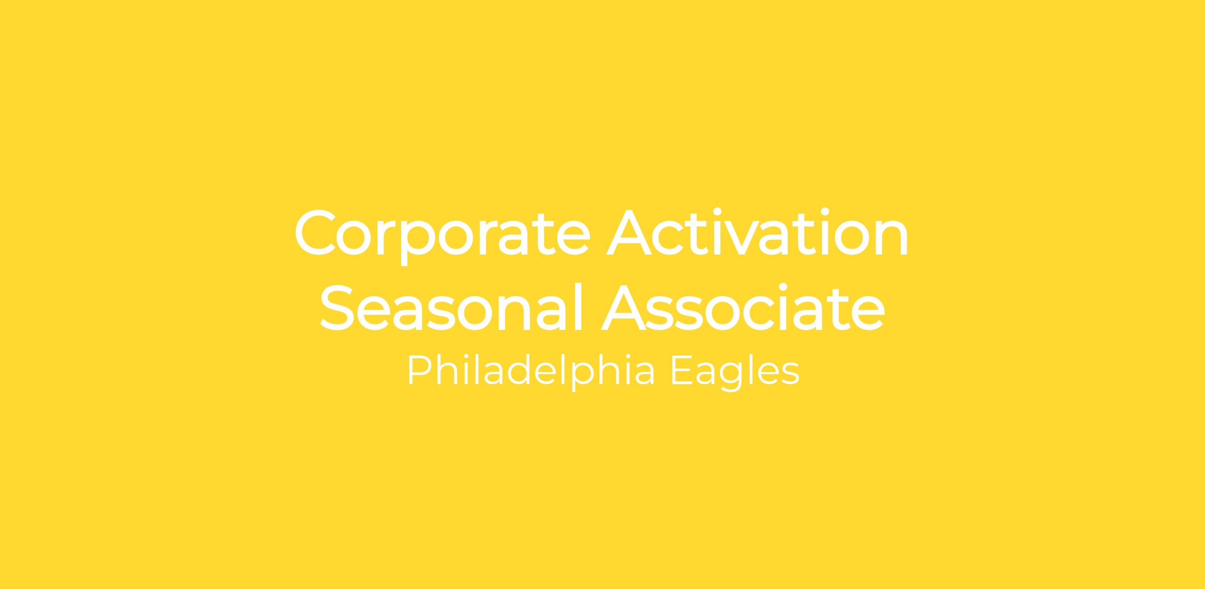 The Seasonal Associate will report to and be under the close supervision of the Senior Manager, Corporate Partner Activation of the Philadelphia Eagles and will work closely with other Corporate Partner Activation team members.
