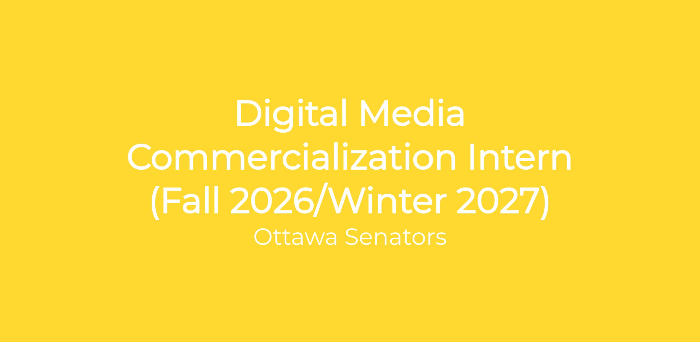 The Ottawa Senators are seeking an energetic, detail-oriented intern to join our Digital Communications team as a Digital Media Commercialization Intern. This internship provides an excellent opportunity to gain hands-on experience with an NHL franchise and become fully engaged in the business of a major league sports team.