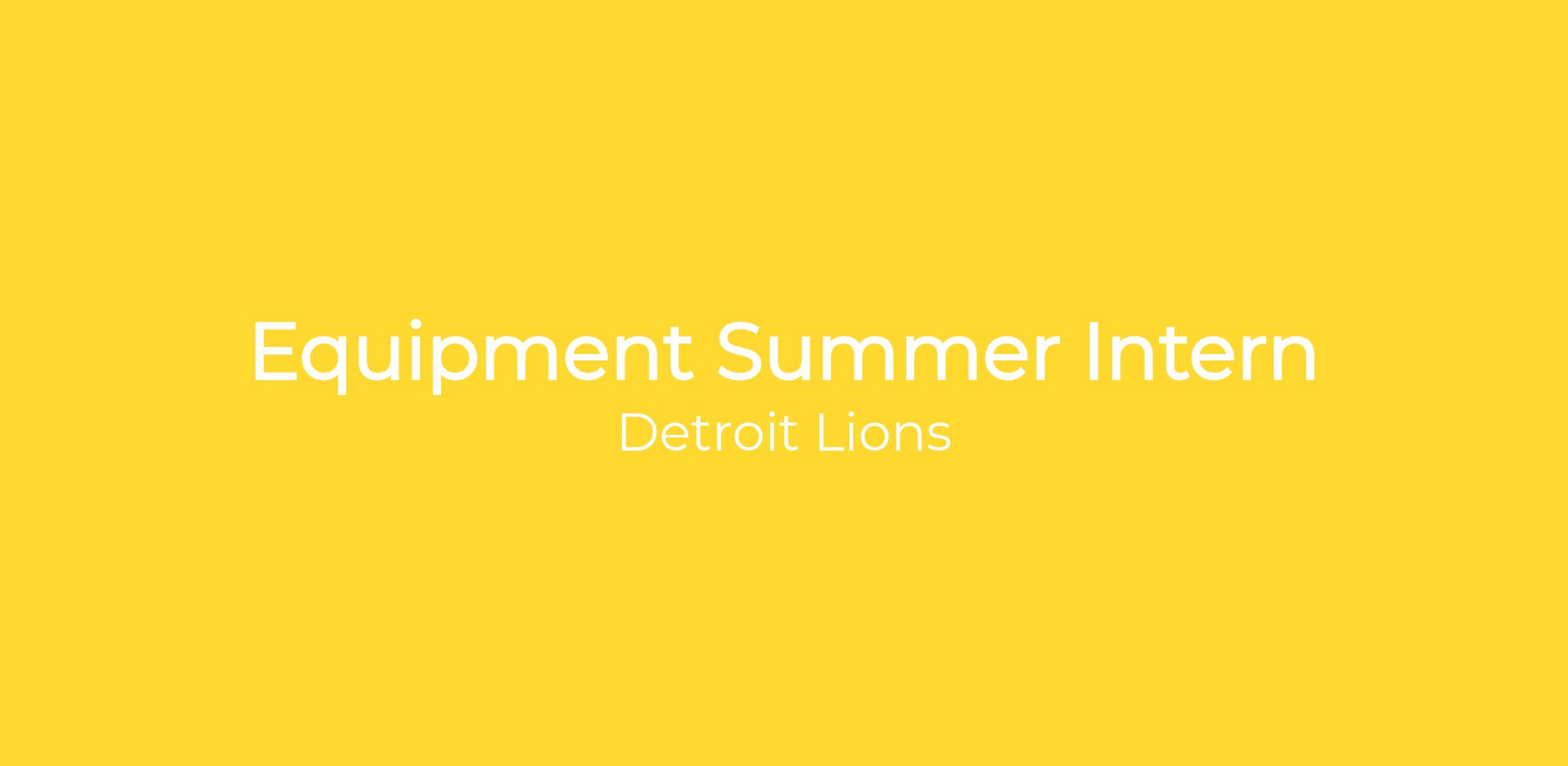 The Detroit Lions are looking for a summer Equipment Intern! This is a full-time internship working approximately 60 hours per week, along with all home games and occasional weekend and holidays. The internship would begin in July 2026 and will conclude around August 2026. This position is based at the Meijer Performance Center with occasional work at the Ford Field.