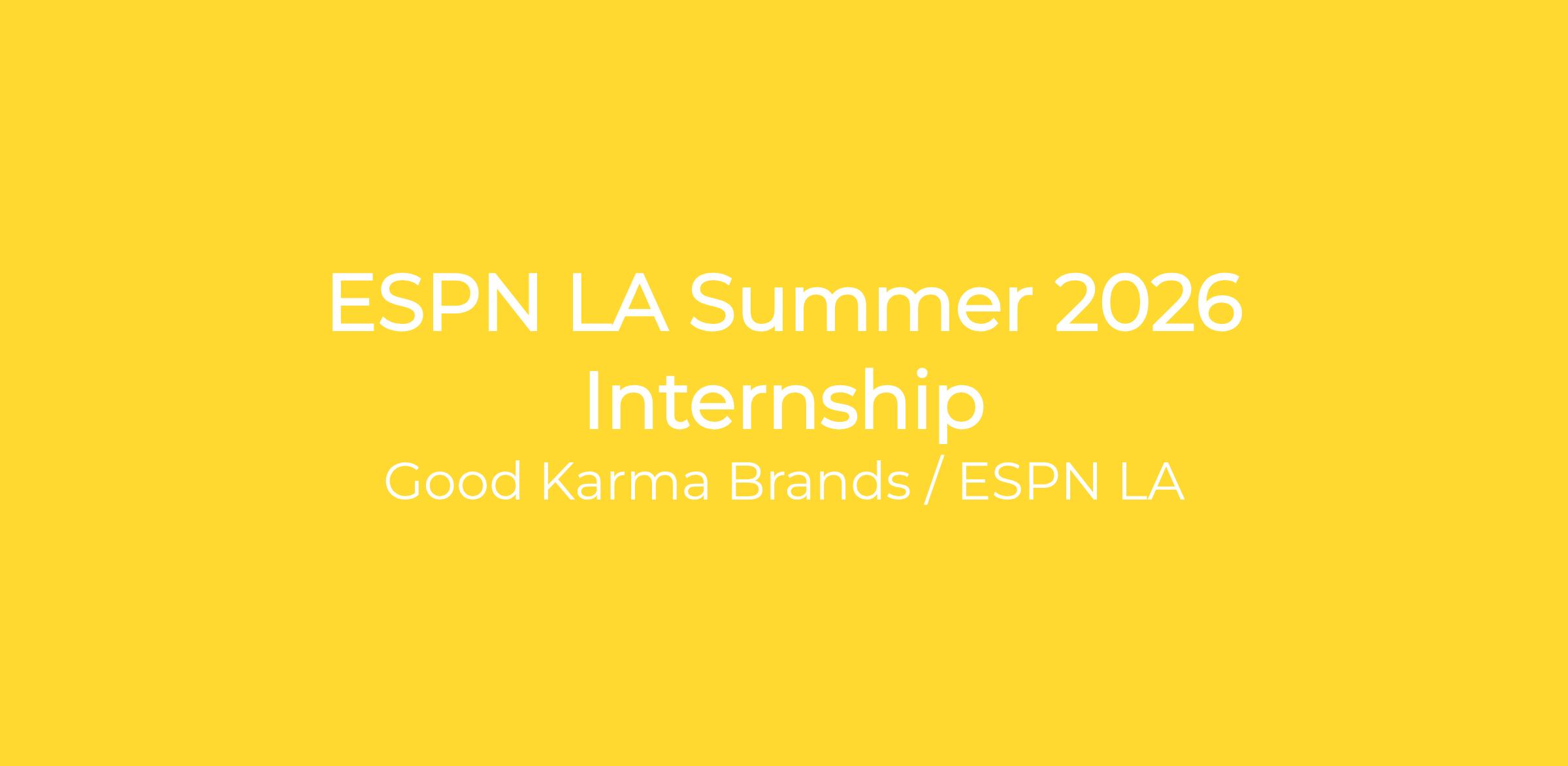 Good Karma Brands ESPN Los Angeles is currently recruiting for our 2026 summer internship program. This is a part-time, paid internship based in our Los Angeles office which will provide an excellent opportunity for candidates to collaborate with assets such as ESPN LA 710 Radio, ESPN LA App, ESPNLA.com and @espnlosangeles’ social media platforms. The ideal candidate will be a proactive, engaged self-starter with an interest in sports media & marketing and will gain hands-on experience in the areas of promotional event marketing, new business development, and sports content creation.