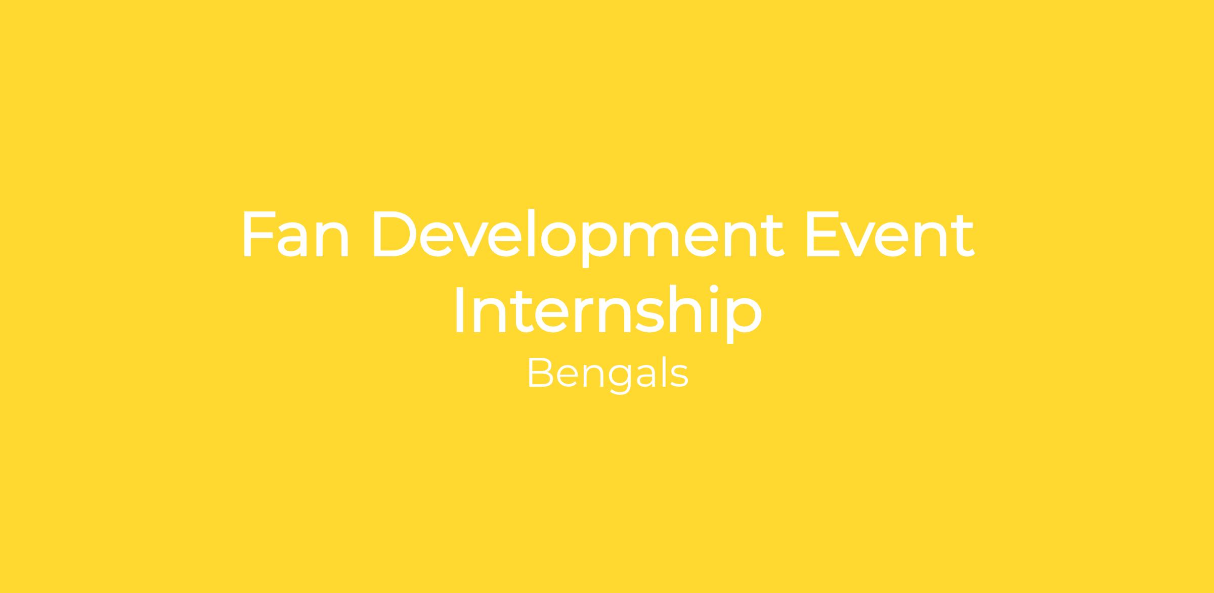 Cincinnati Bengals Fan Development Interns will assist with various efforts to provide world-class experiences for fans at all home games—including preseason, regular season, and postseason—and other non-gameday events.
