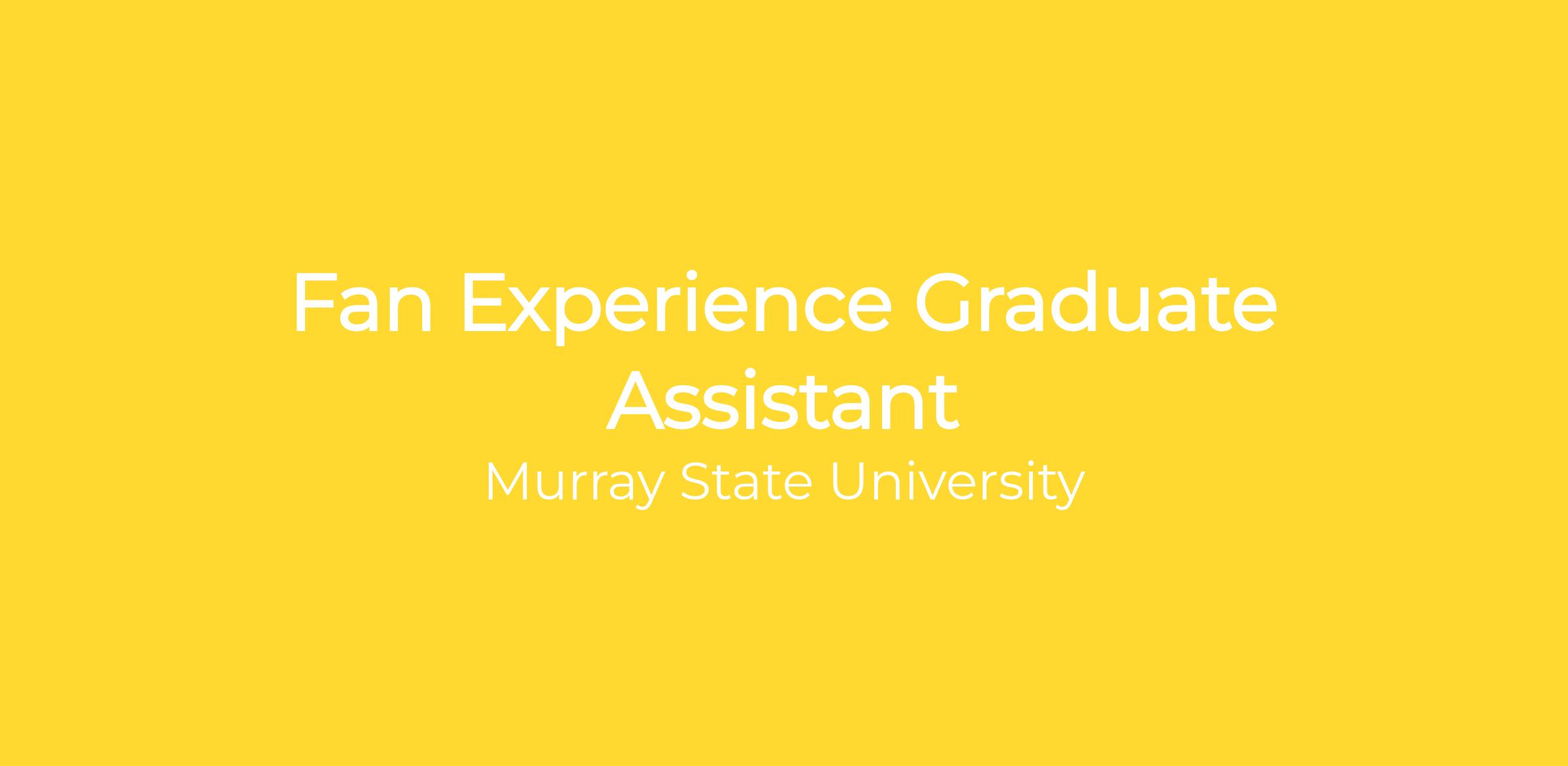 The Fan Experience (FanX) Graduate Assistant/Associate will report to the Senior Associate Athletic Director – Capital Projects & Operations, and assist in coordination of all fan experience, marketing, and promotions efforts for Murray State Athletics. This is a learning based position(s), fostering growth for career readiness upon departure from Murray State University.