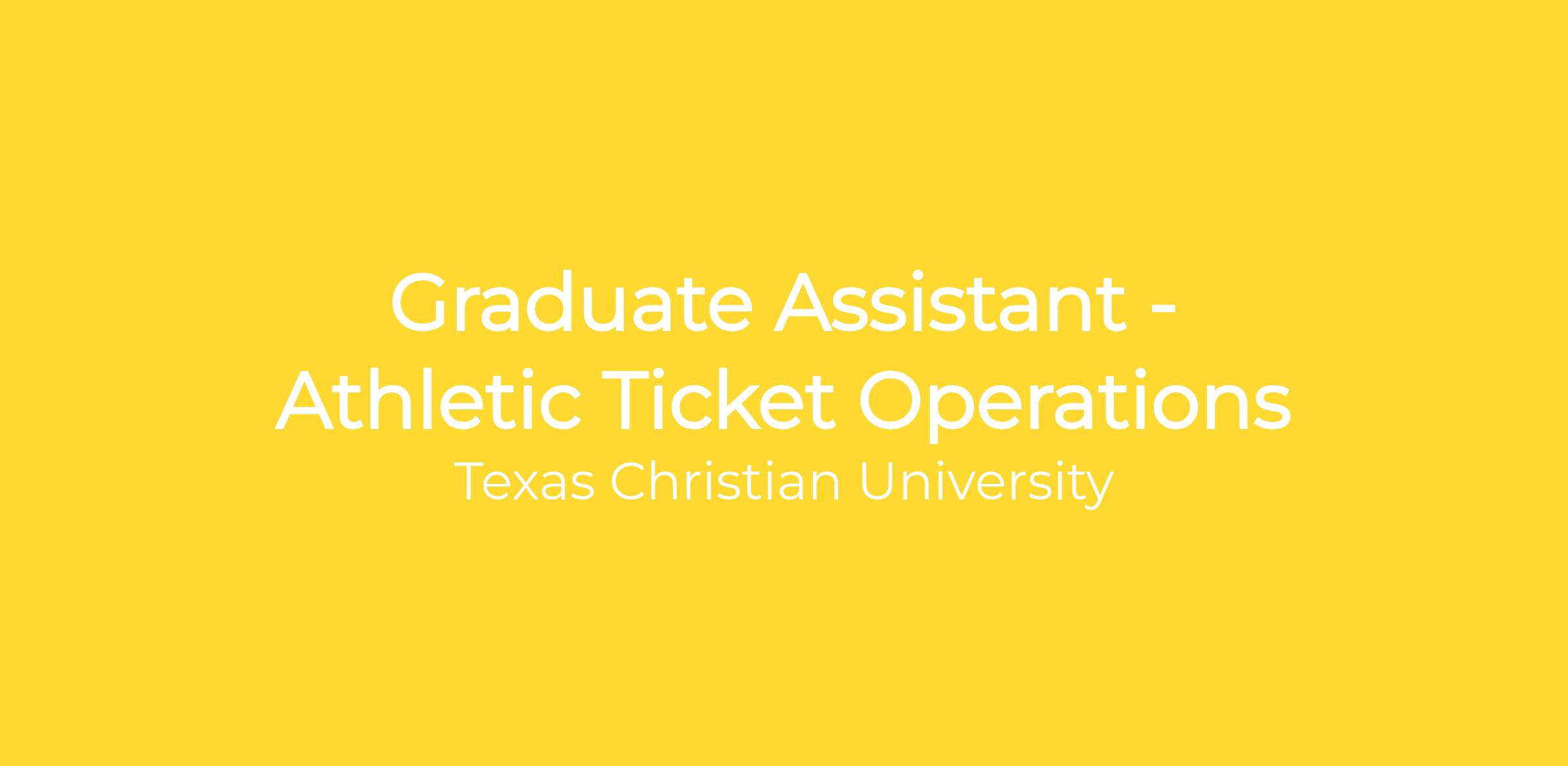 The TCU Athletics Ticket Office is seeking a Graduate Assistant for a two-year appointment. The successful candidate will demonstrate a strong interest in athletics administration along with a commitment to customer service and professional development. Full funding for tuition, required course fees and textbooks and a monthly stipend.