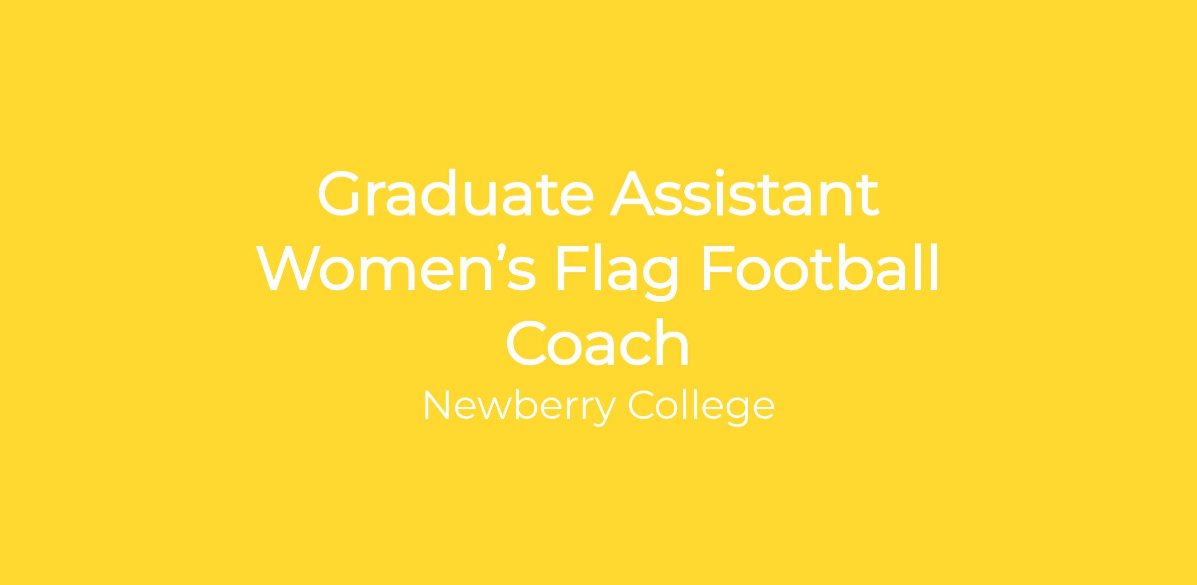 Newberry College (NCAA D2) seeks qualified applicants for Graduate Assistant Women’s Flag Football Coach. The selected candidate will help ensure the program operates and conducts itself within the ideals, goals, rules, and regulations set forth by Newberry College, the National Collegiate Athletic Association (NCAA) and the South Atlantic Conference (SAC).