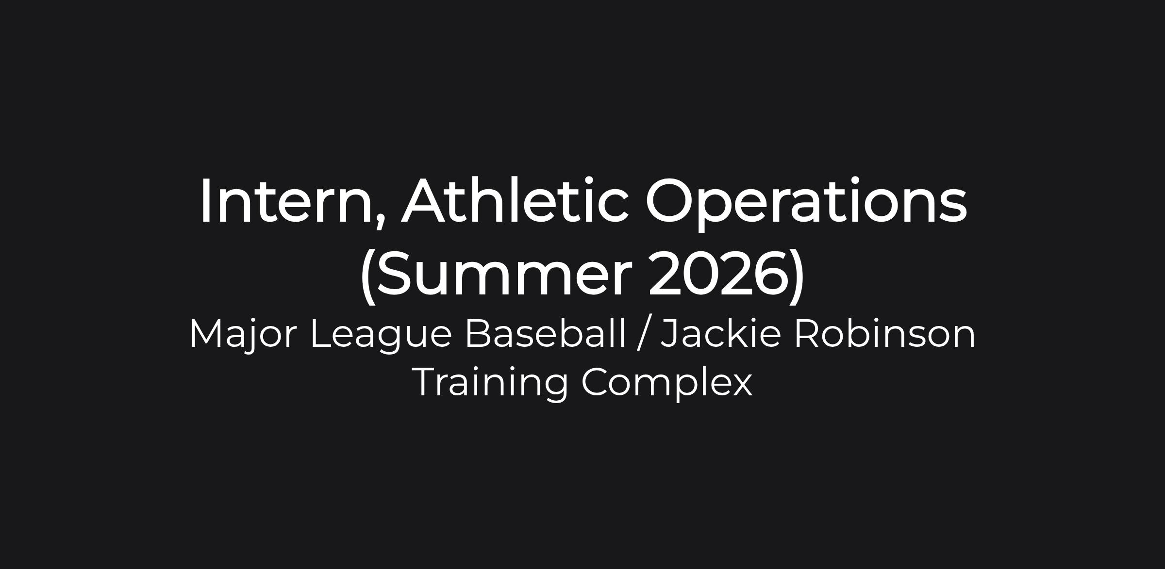 The Intern, Athletic Operations for Jackie Robinson Training Complex (JRTC), assists with day-to-day athletic department duties, including events such as the MLB’s Breakthrough Series, Breakthrough Series Invitational Tournament, Hank Aaron Invitational, Elite Development Invitationals, Nike RBI World Regionals, Nike RBI World Series, and JRTC Labor Day Beach Bash Tournament.