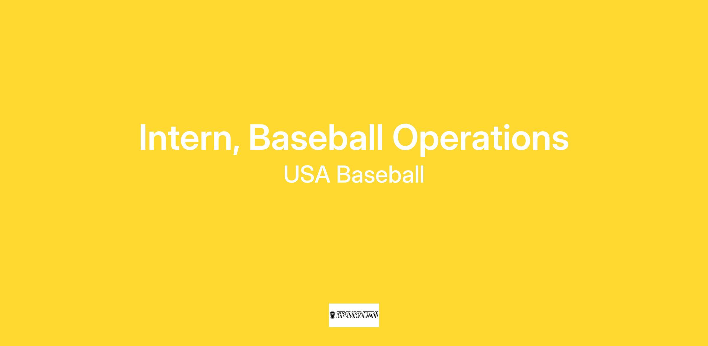 The Intern, Baseball Operations positions support multiple USA Baseball programs, including the 12U, 15U, 18U, Collegiate, and Women’s National Teams, as well as the National Team Championships, Futures Invitational, National Team Development Programs (ADP/NTDP), and National Team Identification Series (NTIS).