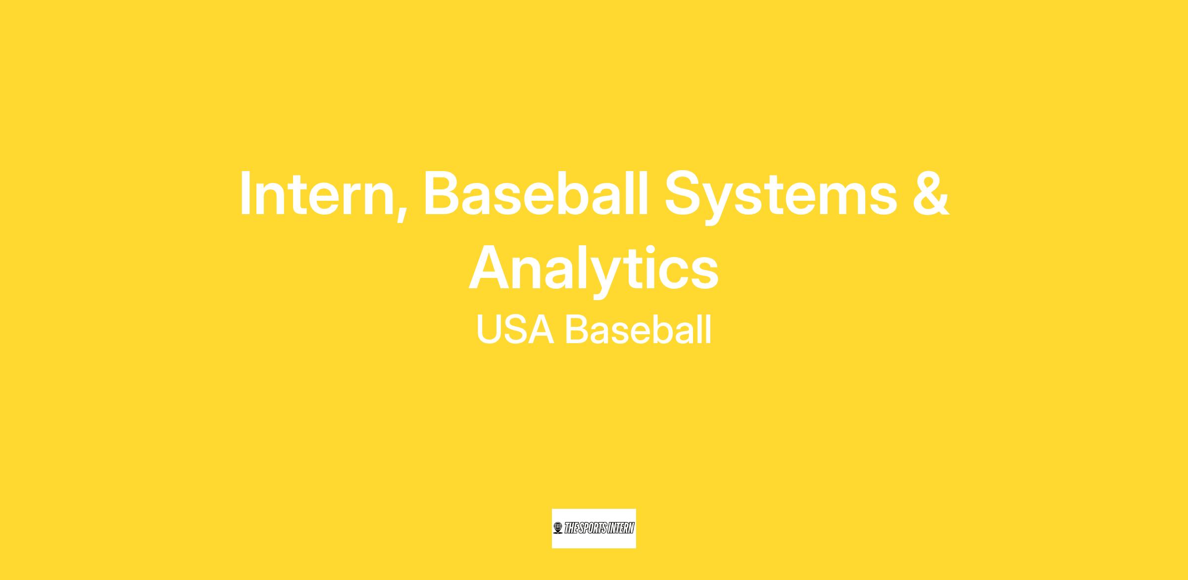 Through this single application, USA Baseball will hire two (2) Interns, Baseball Systems & Analytics.