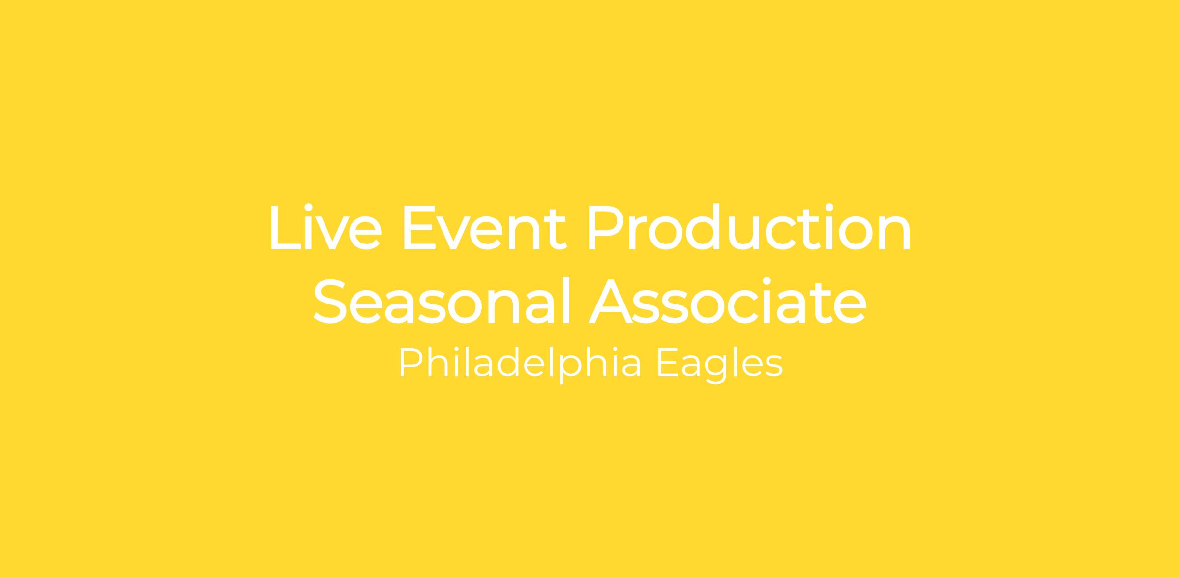 The Live Event Production Seasonal Associate will assist with the planning and execution of game presentation and live in-house production needs for events at Lincoln Financial Field including Eagles football, Temple Football and a variety of special events. They will take the lead in executing small events at Lincoln Financial Field.