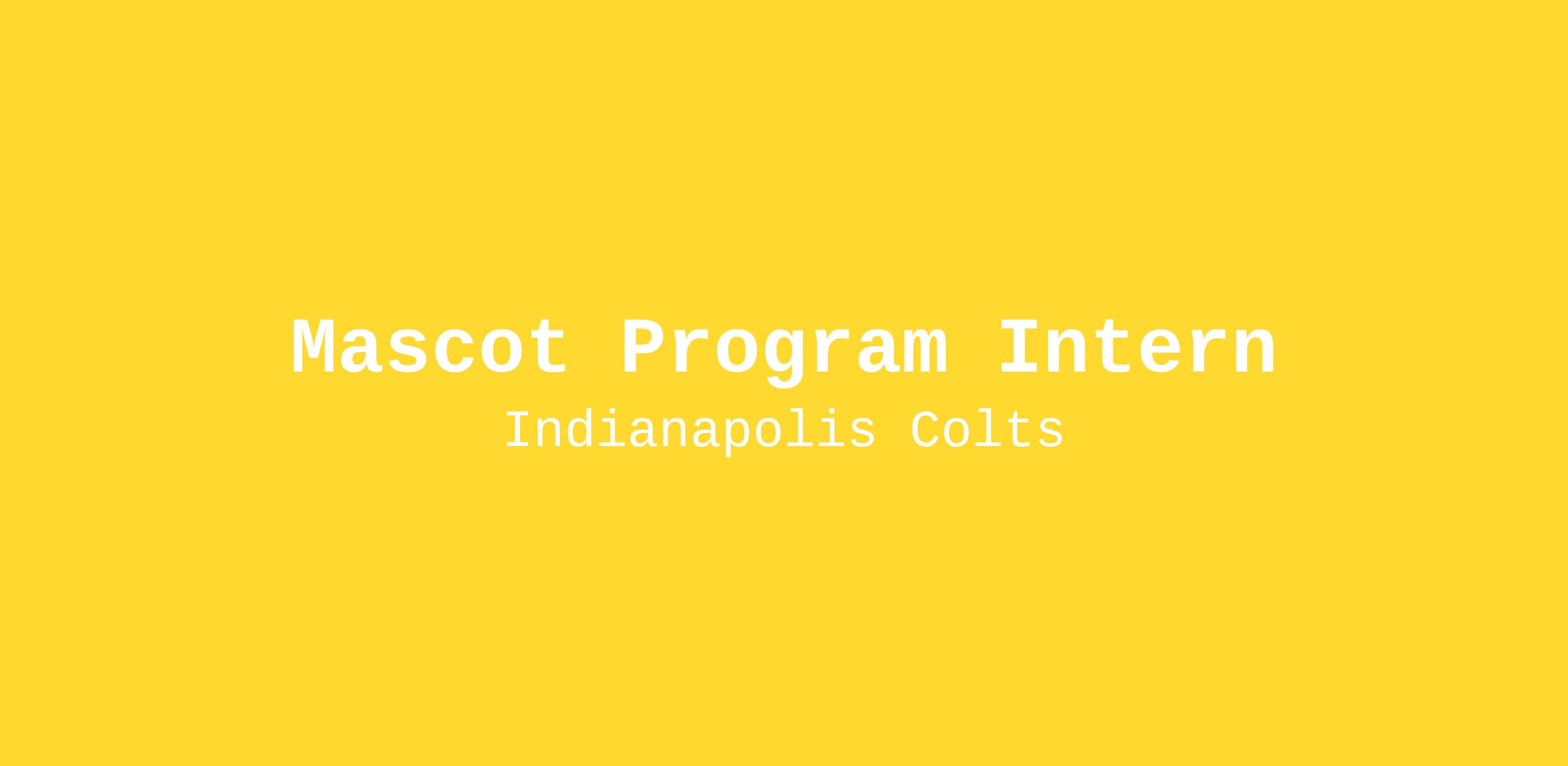 The Indianapolis Colts are seeking a highly motivated individual to fill a full-time, season-long Mascot Program Internship position within a fast-paced, team-oriented environment. The Mascot Program Intern will report to the Mascot Program Senior Coordinator and work closely with the rest of the Mascot Department in scheduling appearances, helping with video and social media content, administrative duties of the department, and serving as a back-up for appearances, as needed.