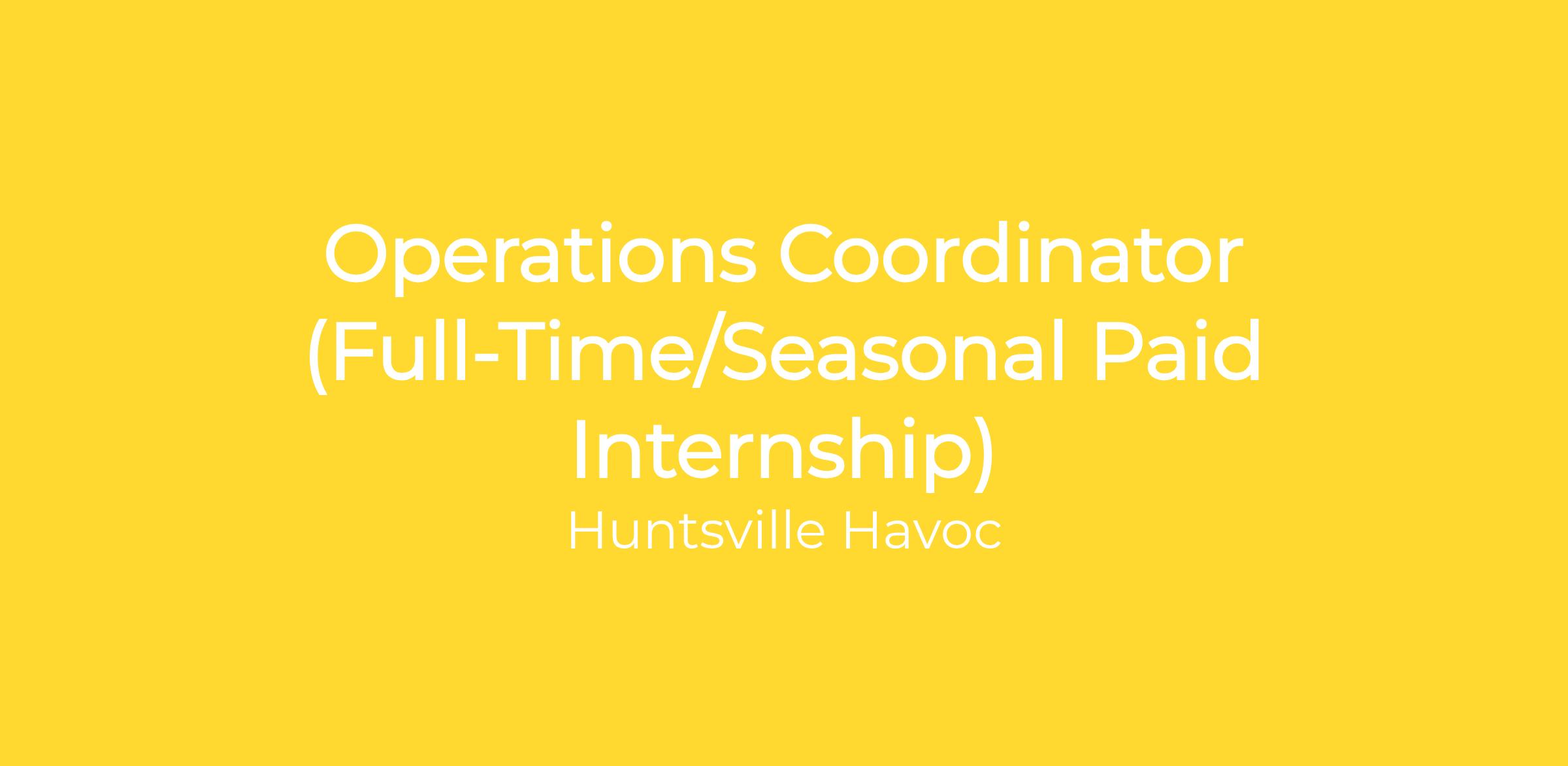 The Huntsville Havoc are seeking a highly motivated, organized, and energetic Operations Coordinator to support game operations and special event execution. This role is designed as a full-time, paid (monthly stipend) post-grad internship opportunity for individuals looking to build a career in sports management, event operations, and live entertainment. This position will run throughout the 2026–27 season (September through April).