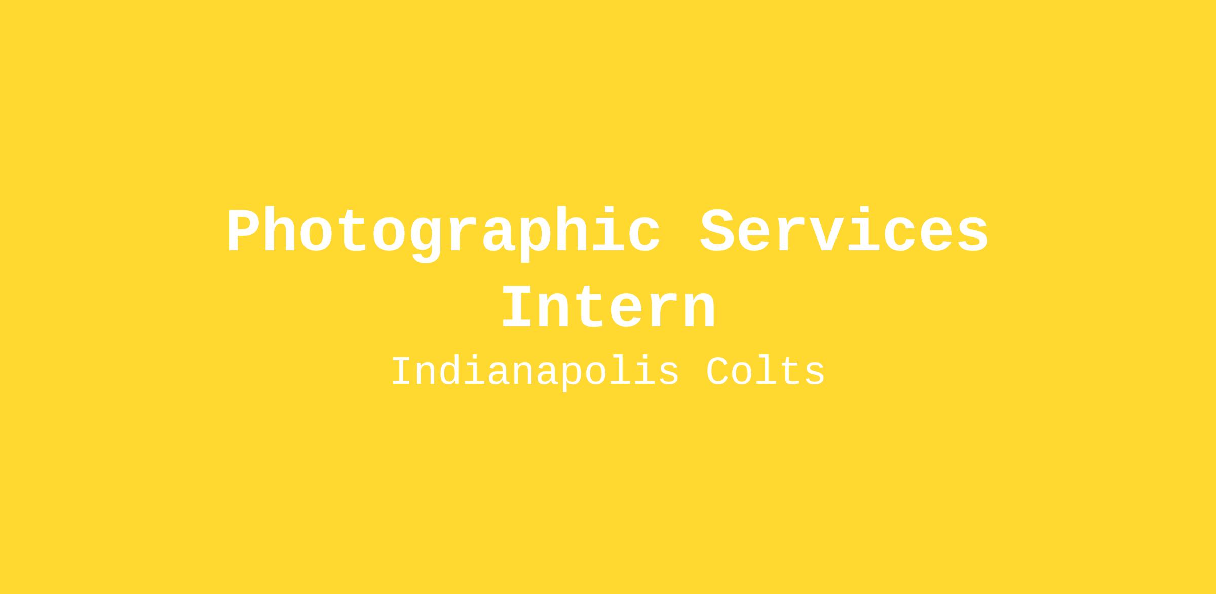 The Indianapolis Colts are seeking a motivated and creative minded candidate with a passion for photography and football to join the Colts Photographic Services team. The ideal candidate possesses an attention to detail and proven experience incorporating creative photography into existing and emerging digital platforms.