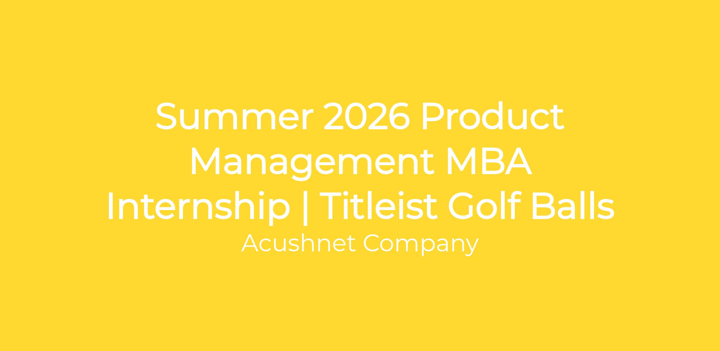 The Titleist Golf Ball Product Management team is looking for a summer MBA intern reporting to the Senior Manager, Golf Ball Product Management. The intern will be heavily integrated into the daily responsibilities of the Product Management team. This will include the opportunity to be immersed into the Research & Development process, gain an understanding of Golf Ball manufacturing and form connections with Titleist associates in all key areas of the Golf Ball business. The MBA intern will support the Business Planning and Leadership Team on key designated projects summarized below: