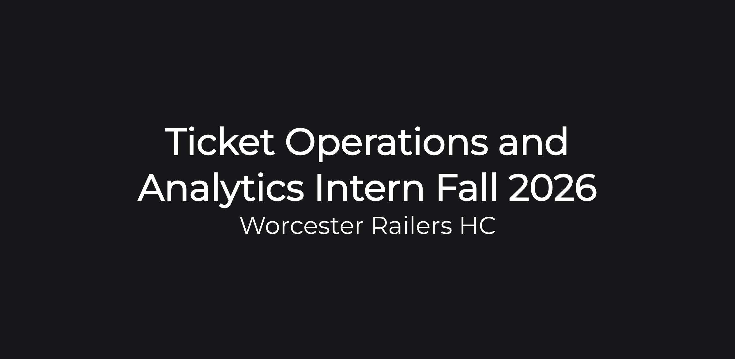 The Worcester Railers HC of the ECHL is looking for a Ticket Operations and Analytics Intern for an UNPAID/CREDIT ONLY role in the Fall/Winter of the 2026-2027 Academic Year. Candidates must be current college students and must be able to dedicate 6 to 12 hours per week to the internship. Strong verbal skills are essential, as is the ability to work well in a dynamic, small-office environment. The successful candidate should be dependable, able to handle multiple tasks, and work long hours (evenings, weekends & holidays included).