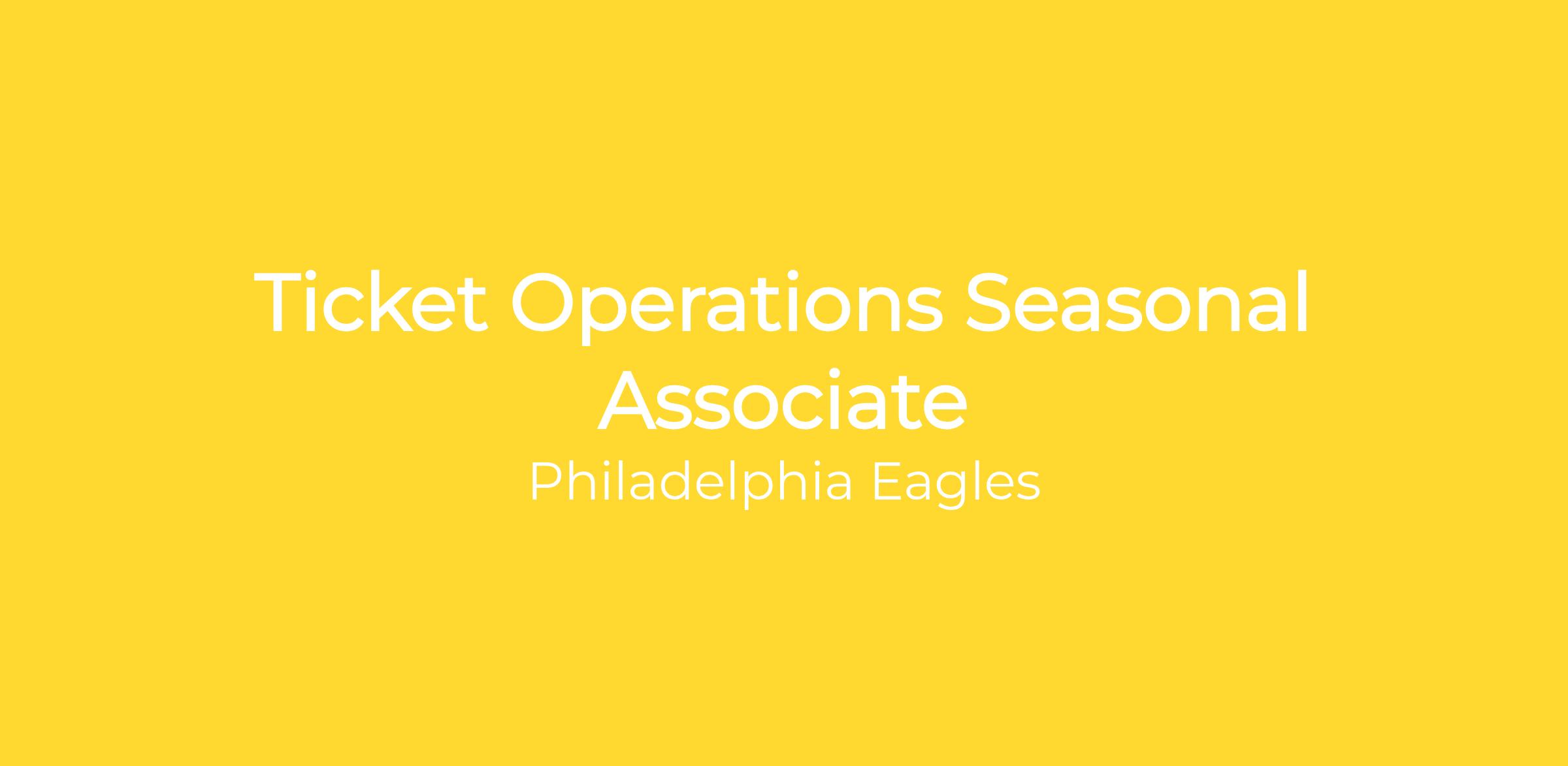 The Ticket Operations Seasonal Associate will learn the intricacies of an NFL Ticket Operations Department and Stadium Ticket Office. This position assists in the development and ticketing execution of Philadelphia Eagles games and large-scale special events. Associates will utilize the Archtics ticketing system daily for season ticket member account management, event creation, reporting, account updates, and order processing while helping to deliver excellent service to Eagles fans and season ticket members.