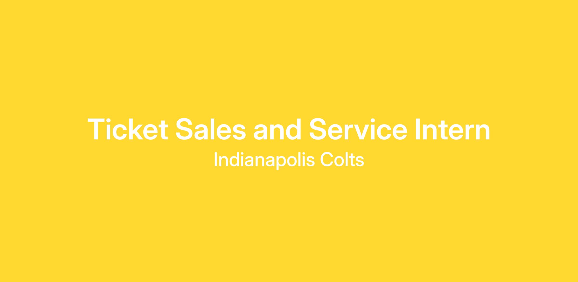 The Indianapolis Colts are seeking a highly motivated individual to fill a full-time, season-long Ticket Sales and Service Internship position within a fast-paced, team-oriented environment. The Ticket Sales and Service Intern will report to the Manager of Ticket Marketing and Events in event planning, ticket marketing campaign development, and administrative duties of the department.
